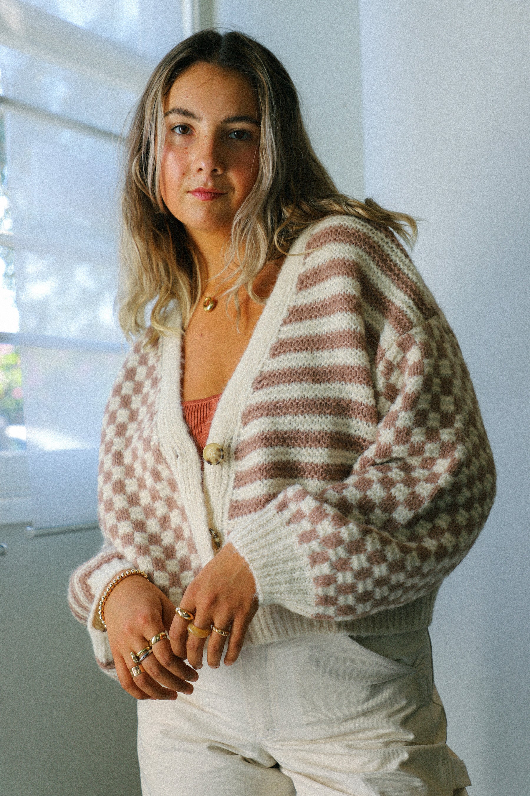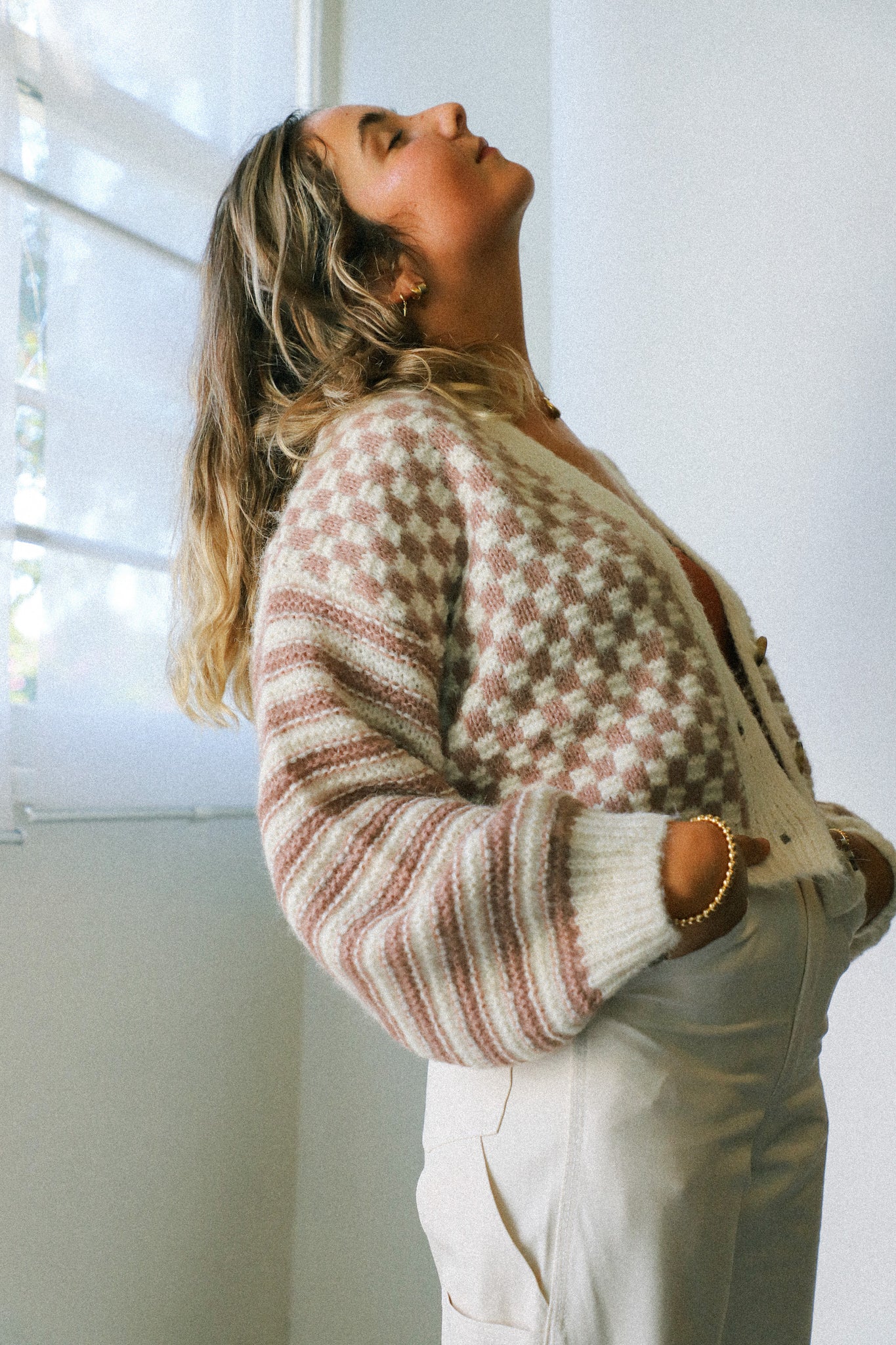 Mixed Checker Cardigan