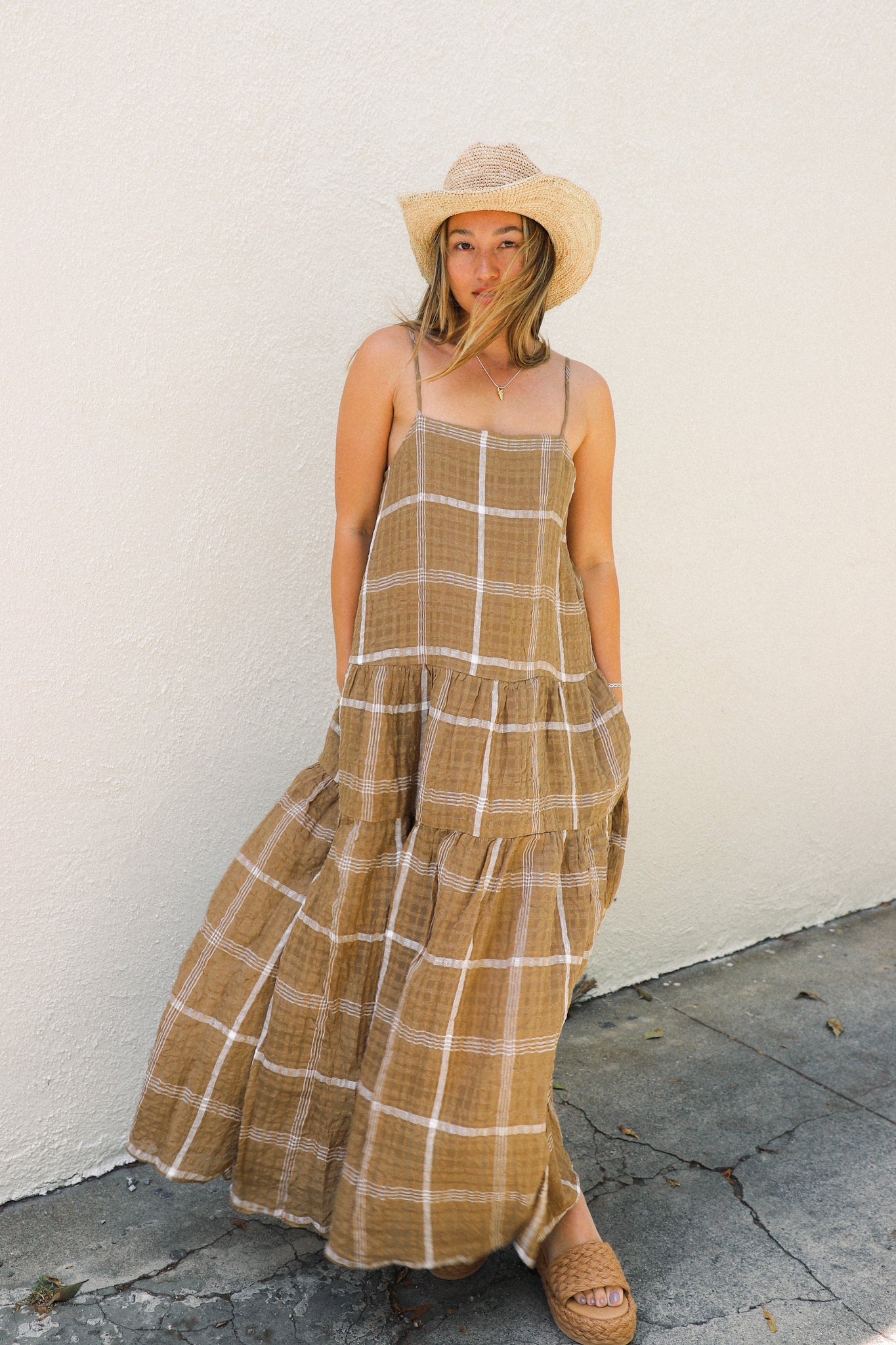 This lightweight woven plaid dress is the perfect summer piece to take to the beach or vacation.
