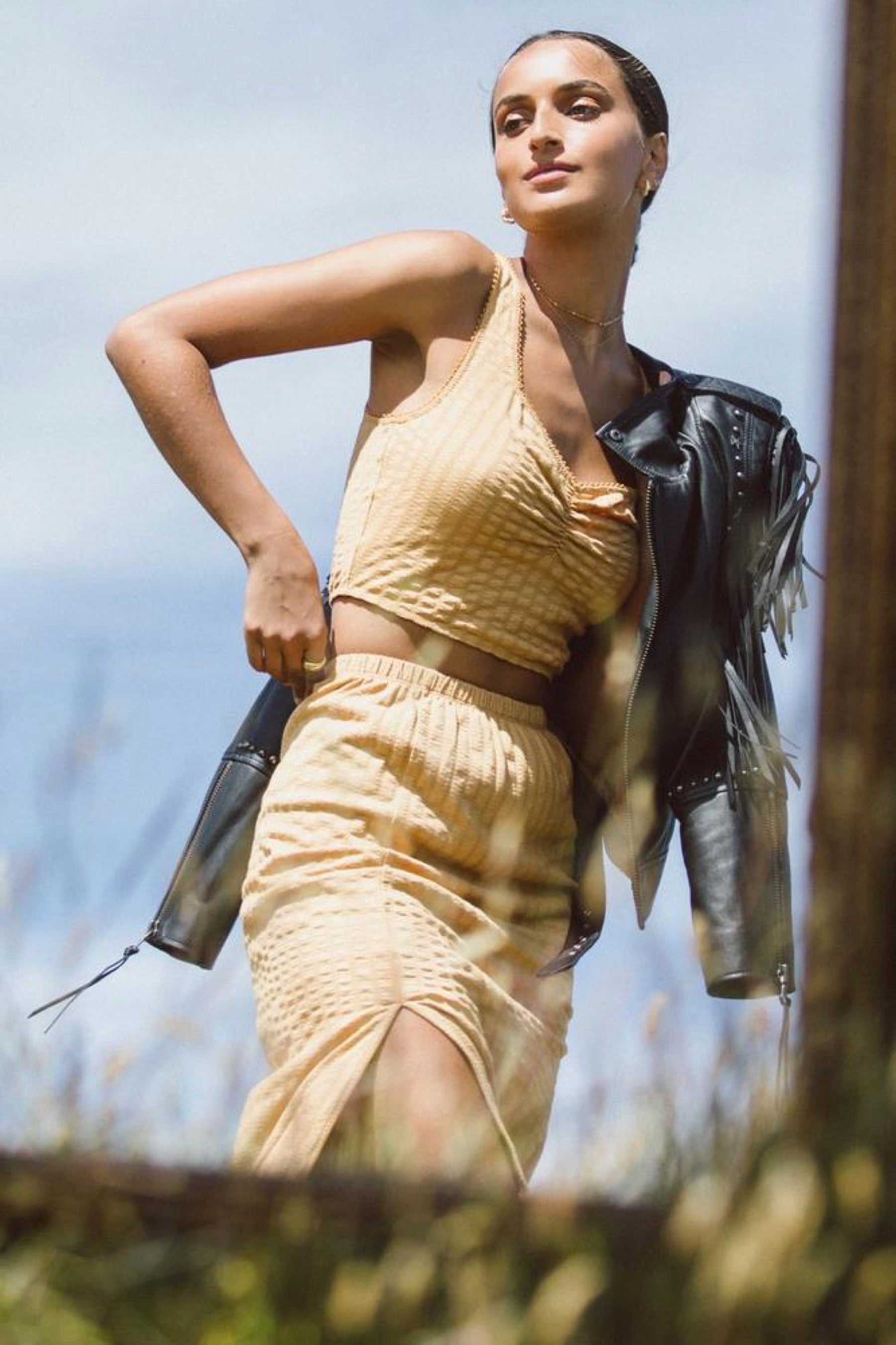 The Bonnie Crop Top with its elegant gathering at the bust and elasticated scalloped trim, is a heavenly wardrobe staple designed to pair perfectly with almost any ensemble.