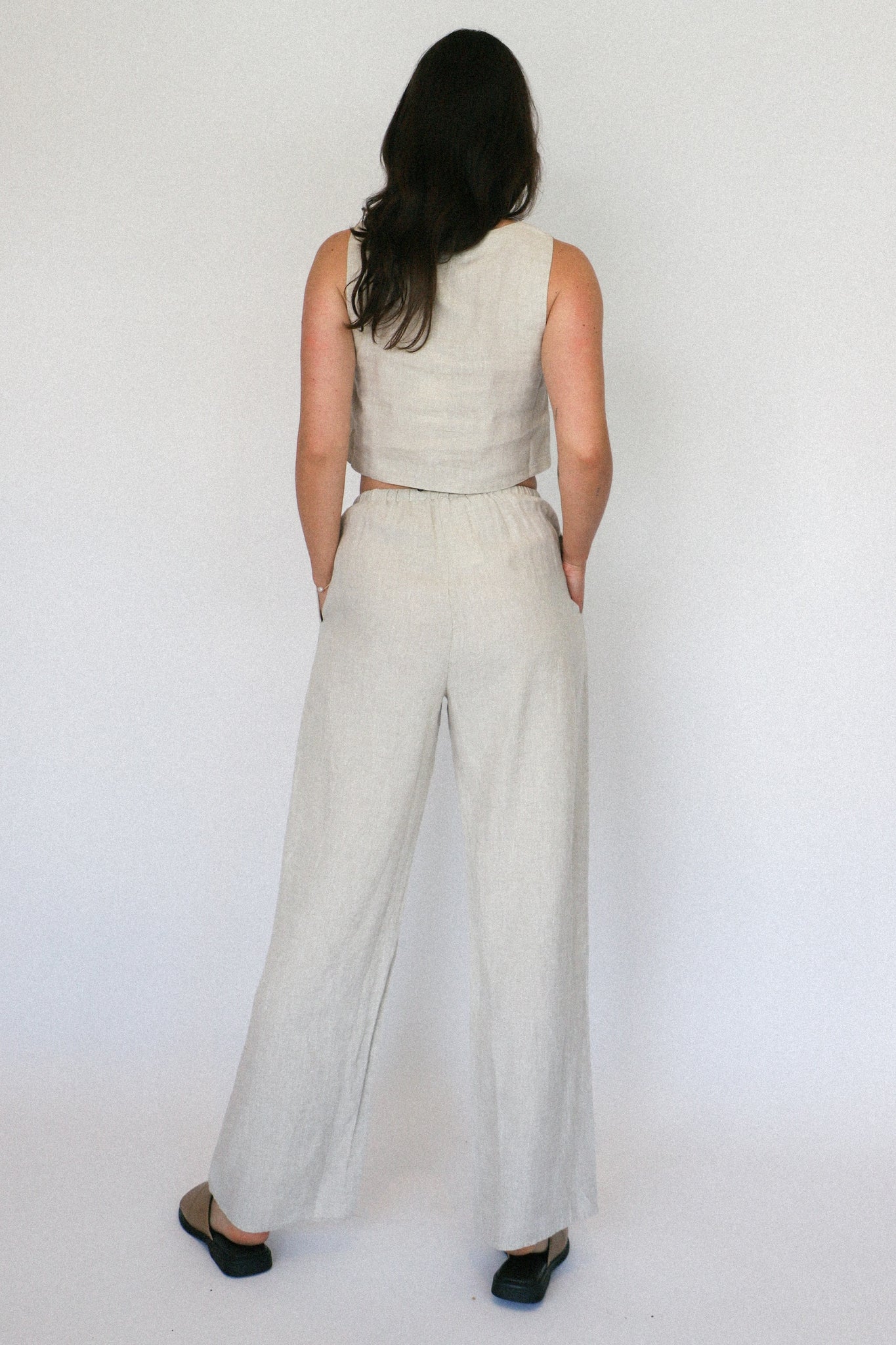 Made from high-quality linen, these pants offer a comfortable and loose fit. The drawstring waist adds a touch of ease, making them perfect for any occasion.