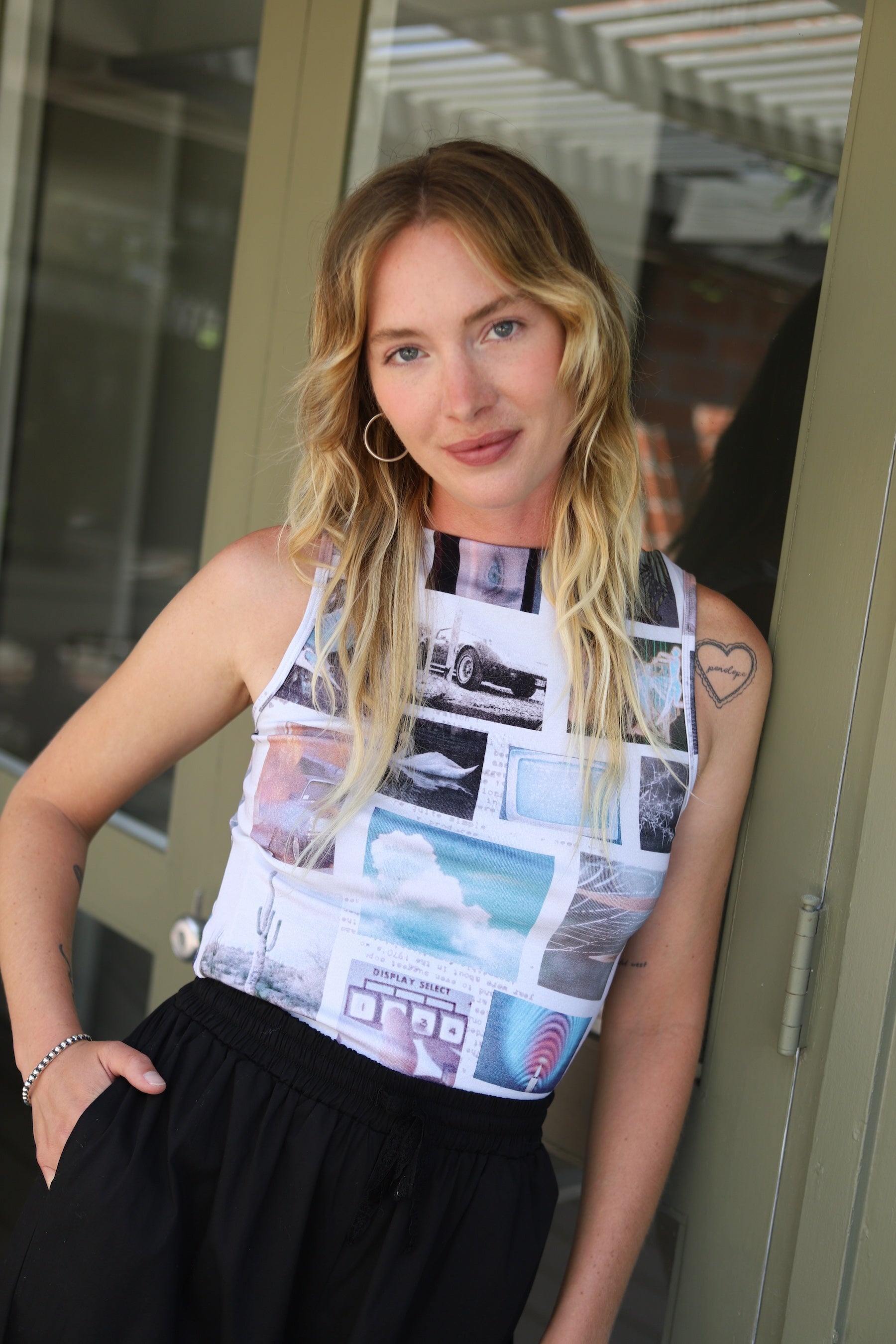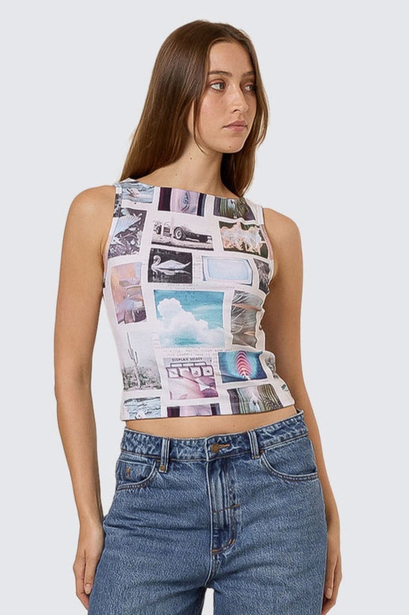 Bring some attitude to your spring basics with the Natural Progression Tank in Cloud. Cut from soft stretch cotton rib in a snug, cropped fit, this women's tank top features all-over photo collage graphics that deliver a straight-out standout silhouette.