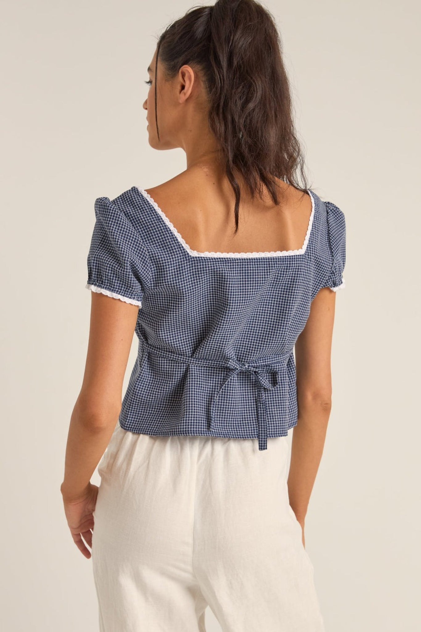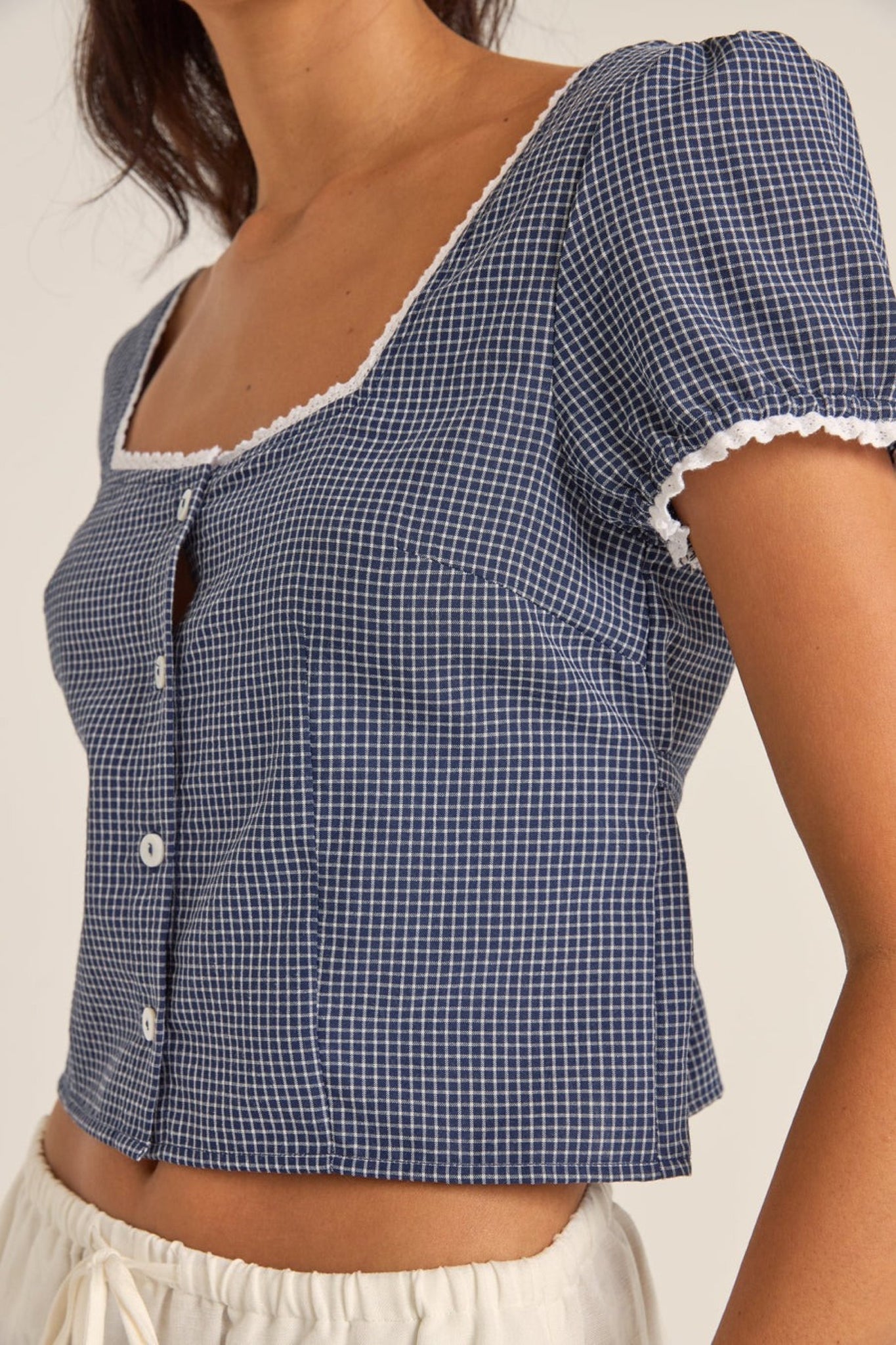 Introducing our playful Navy Sadie Top, perfect for adding a touch of quirkiness to your wardrobe. This top features a charming navy color and white lace detail, making it both stylish and unique.