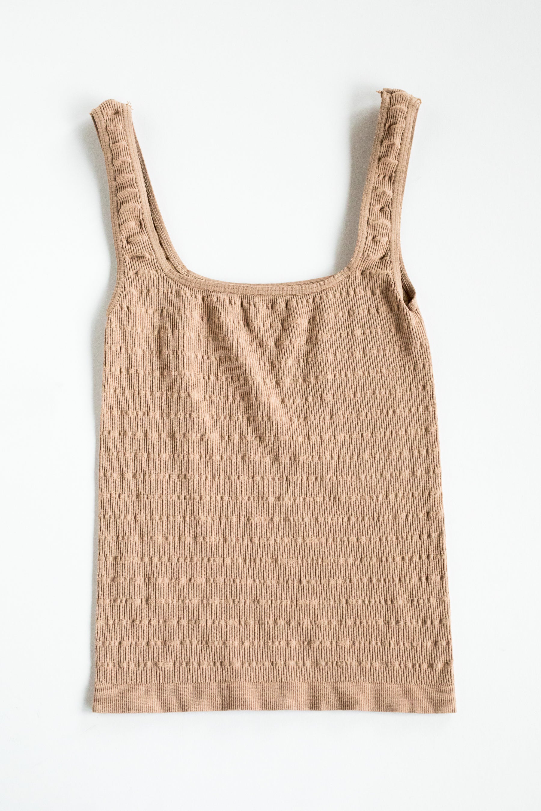 Essential textured cami featured in Free People's signature Seamless fabric with a formfitting silhouette and square neckline. Features a stretch fit, a slightly cropped design, and is unlined.