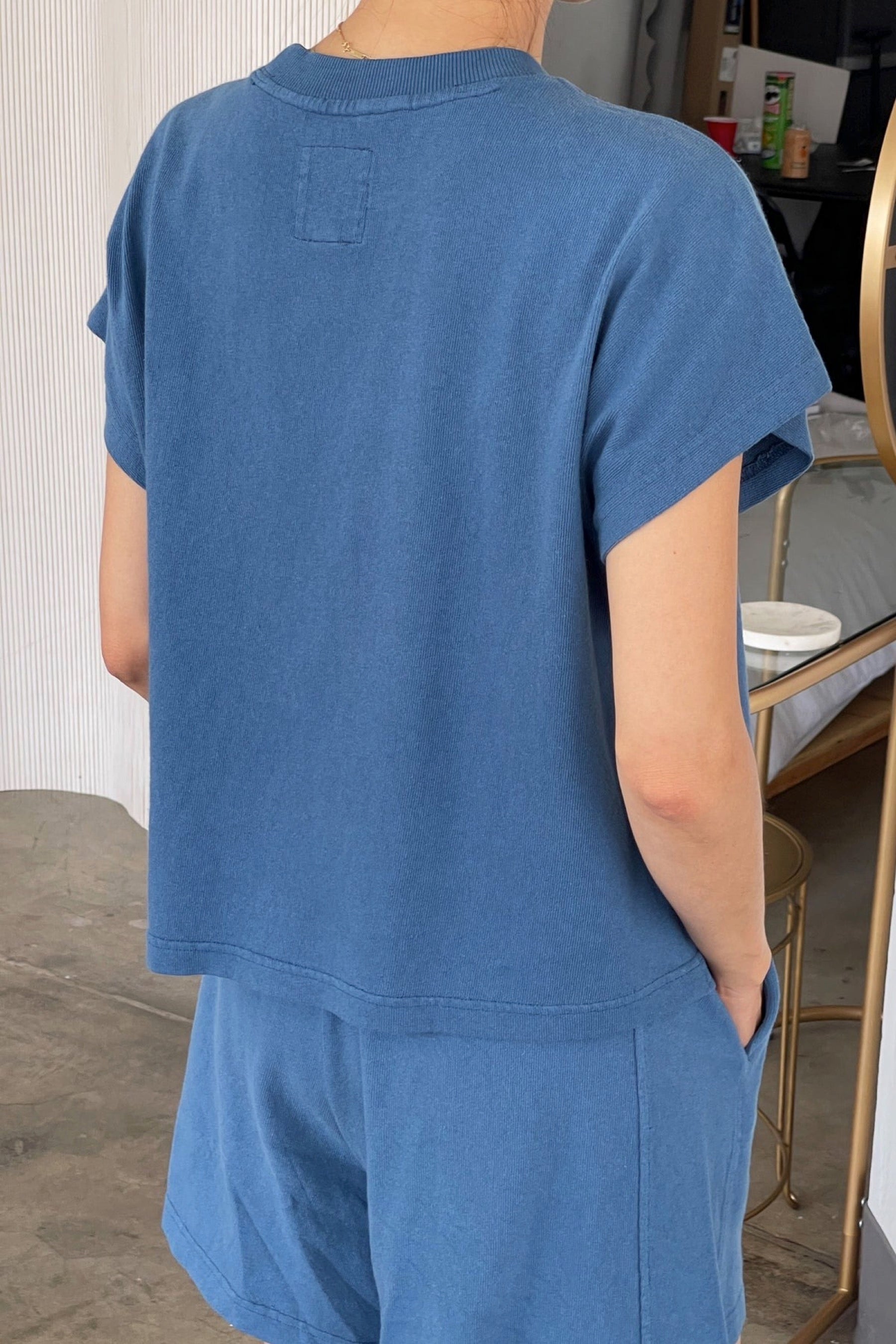Featuring a shorter length to pair perfectly with high waisted bottoms but still give enough coverage for mid-rise bottoms and just the right amount of off shoulder dolman sleeve. The Jeanne Tee has a high crew neck with an extra wide neckband that adds to her signature charm.