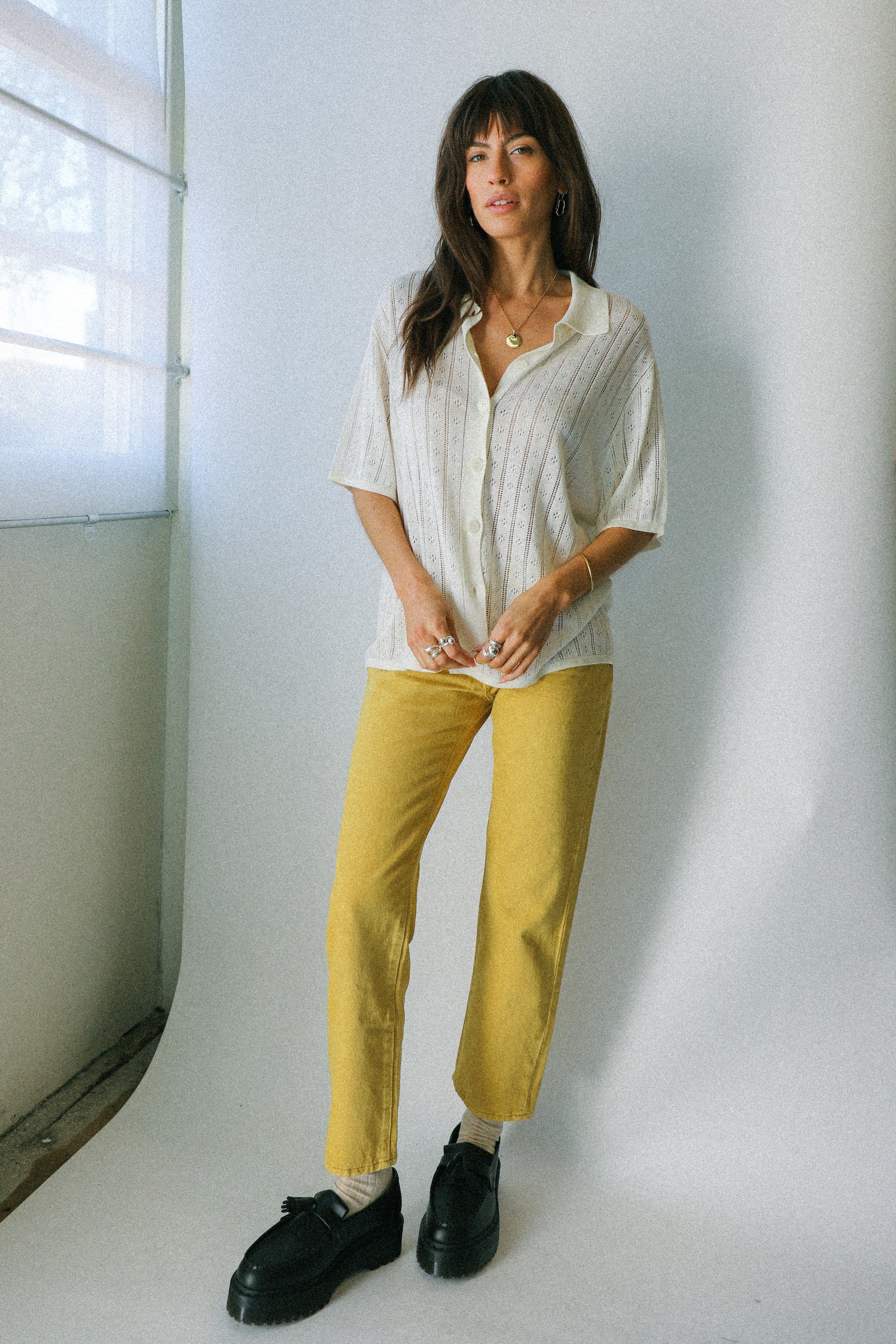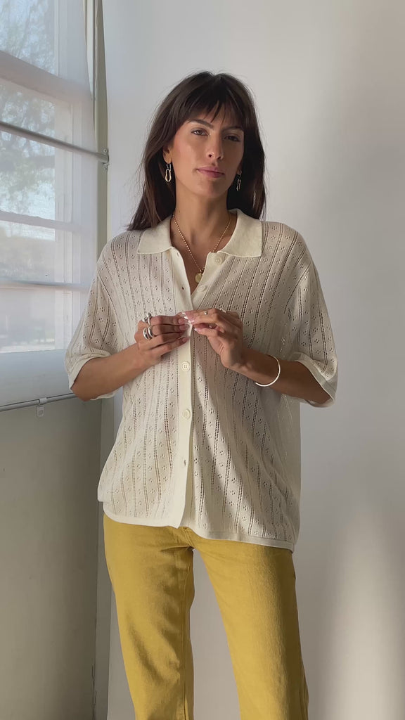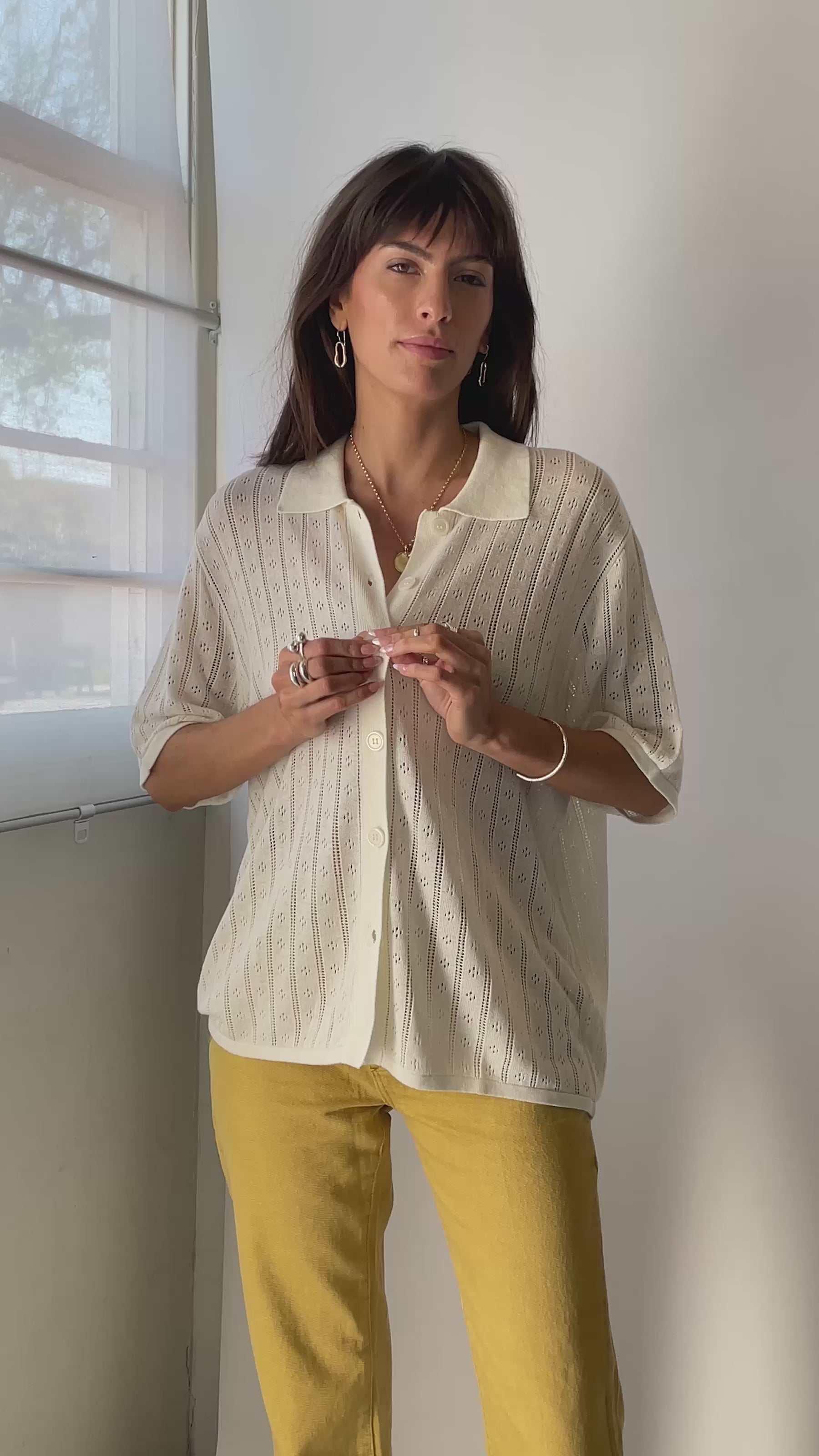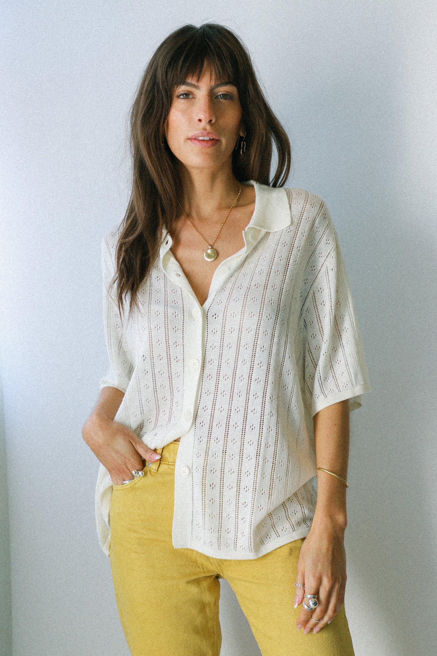 Relaxed fitting knit shirt featuring Rolla's signature pointelle knit pattern in a super soft linen blend with tonal buttons.