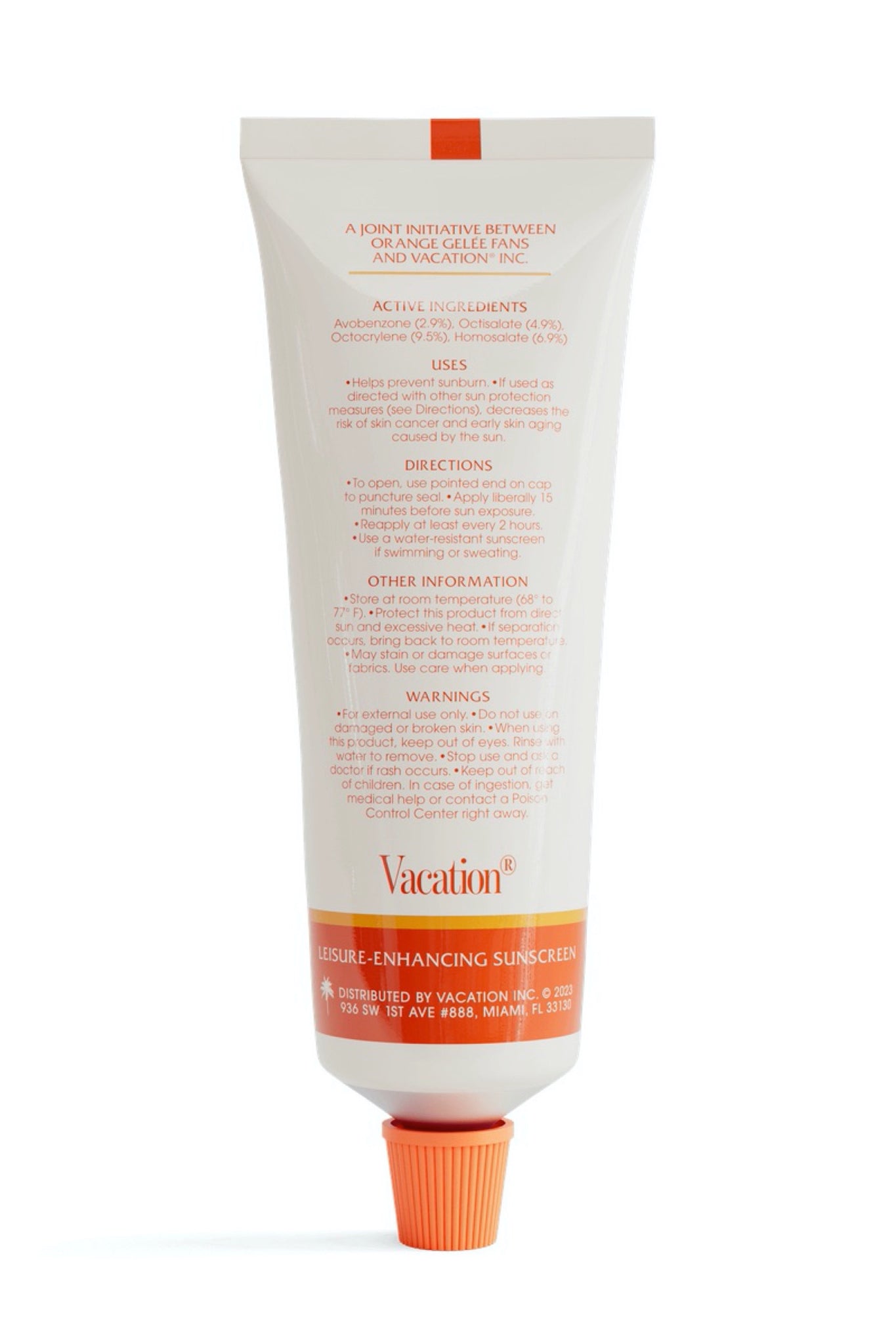 A nostalgic, yet modern take on a French Riviera classic. Developed alongside a panel of eleven (original) Orange Gelée fans and beauty experts, Orange Gelée by Vacation® pays homage to the legendary look, feel, scent & shine of the original, while updating it with SPF 30 and luscious natural oils and butters.