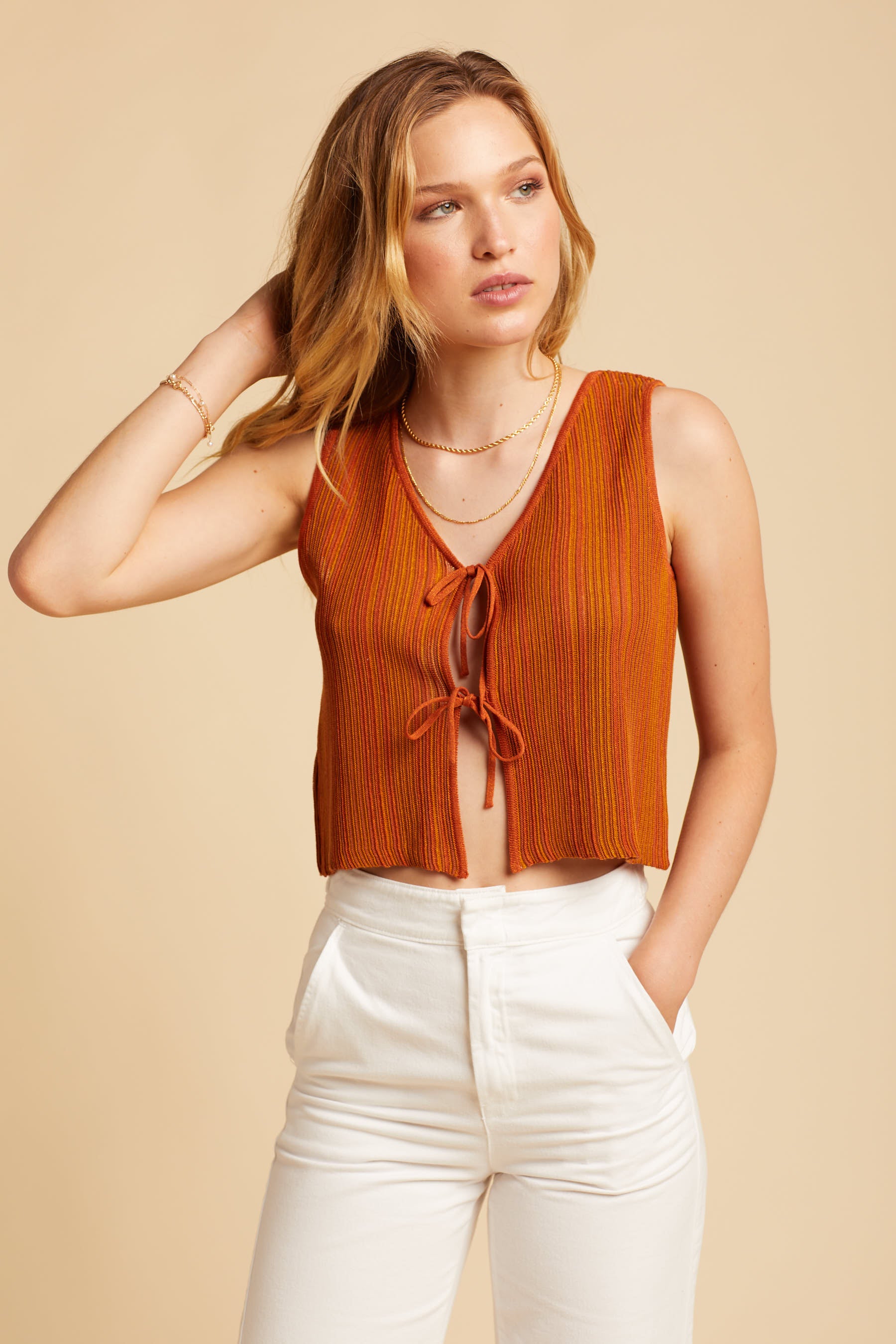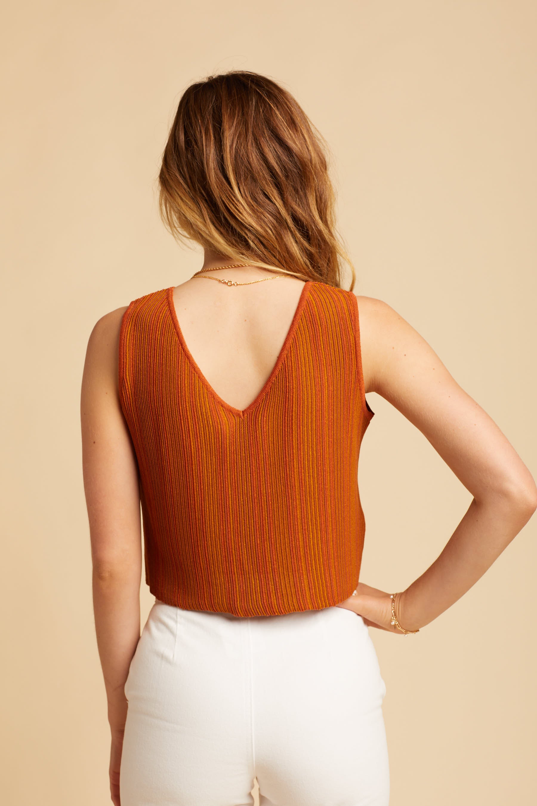 Handmade in Barcelona, this reversible striped knitted features a V shaped neck and backline top with adjustable knots.