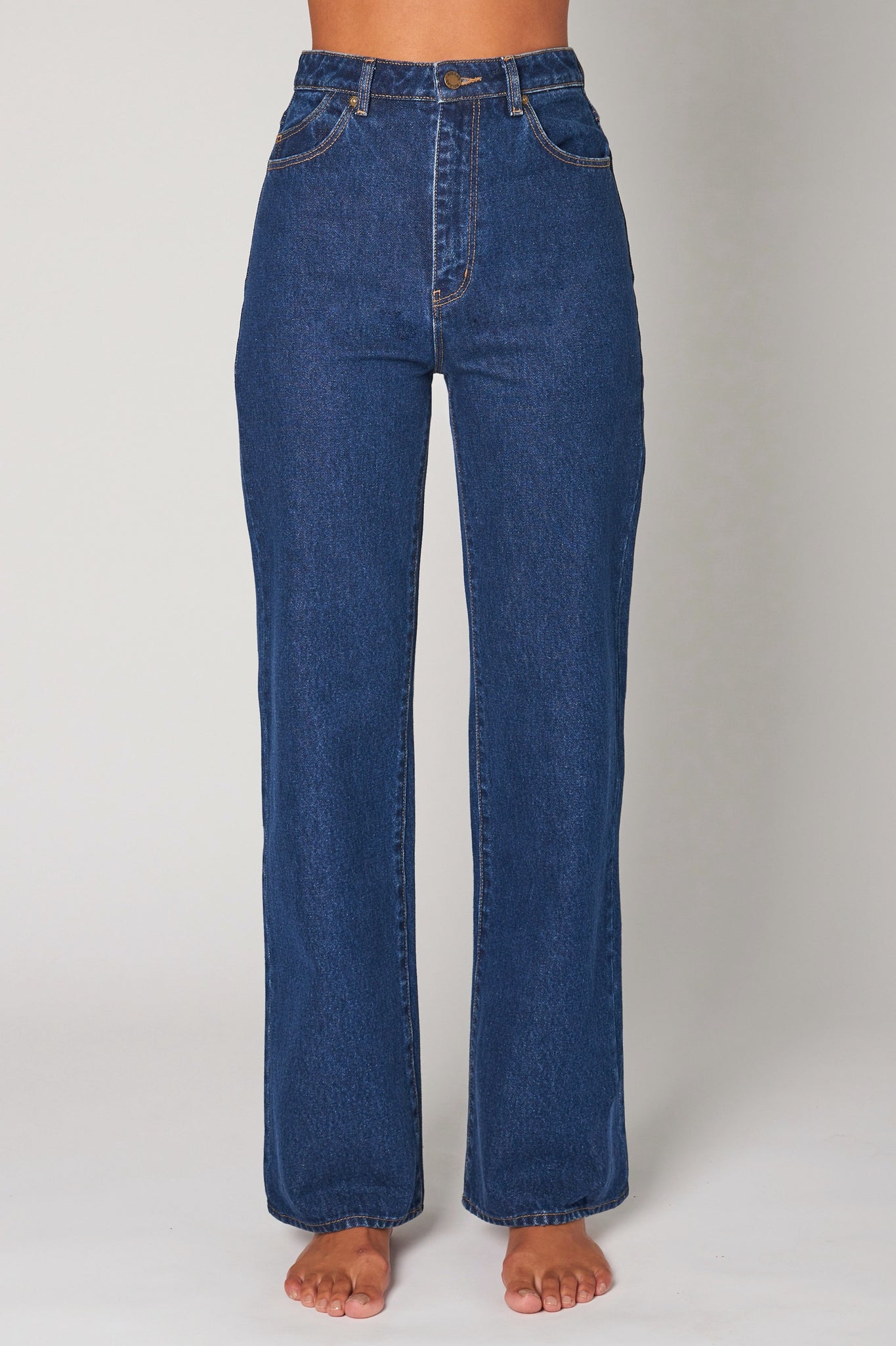 High-rise, wide leg jean, made with a rigid denim. We suggest going up a size. Tight around the seat but will soften with wear, Features Rollas signature back pocket stitching, specially angled and shaped in the back for a truly peachy looking butt.