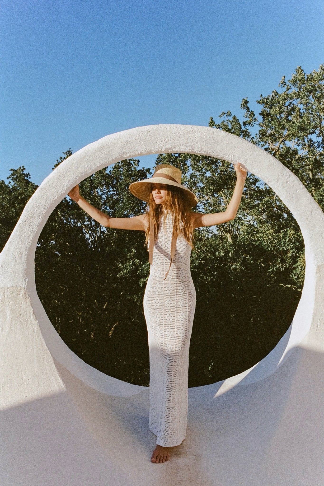 Wide-brimmed and domed down for the ultimate sun protection – this is the summer accessory you have been waiting for. Made from golden wheat straw and featuring a detachable chocolate brown cotton neck tie.