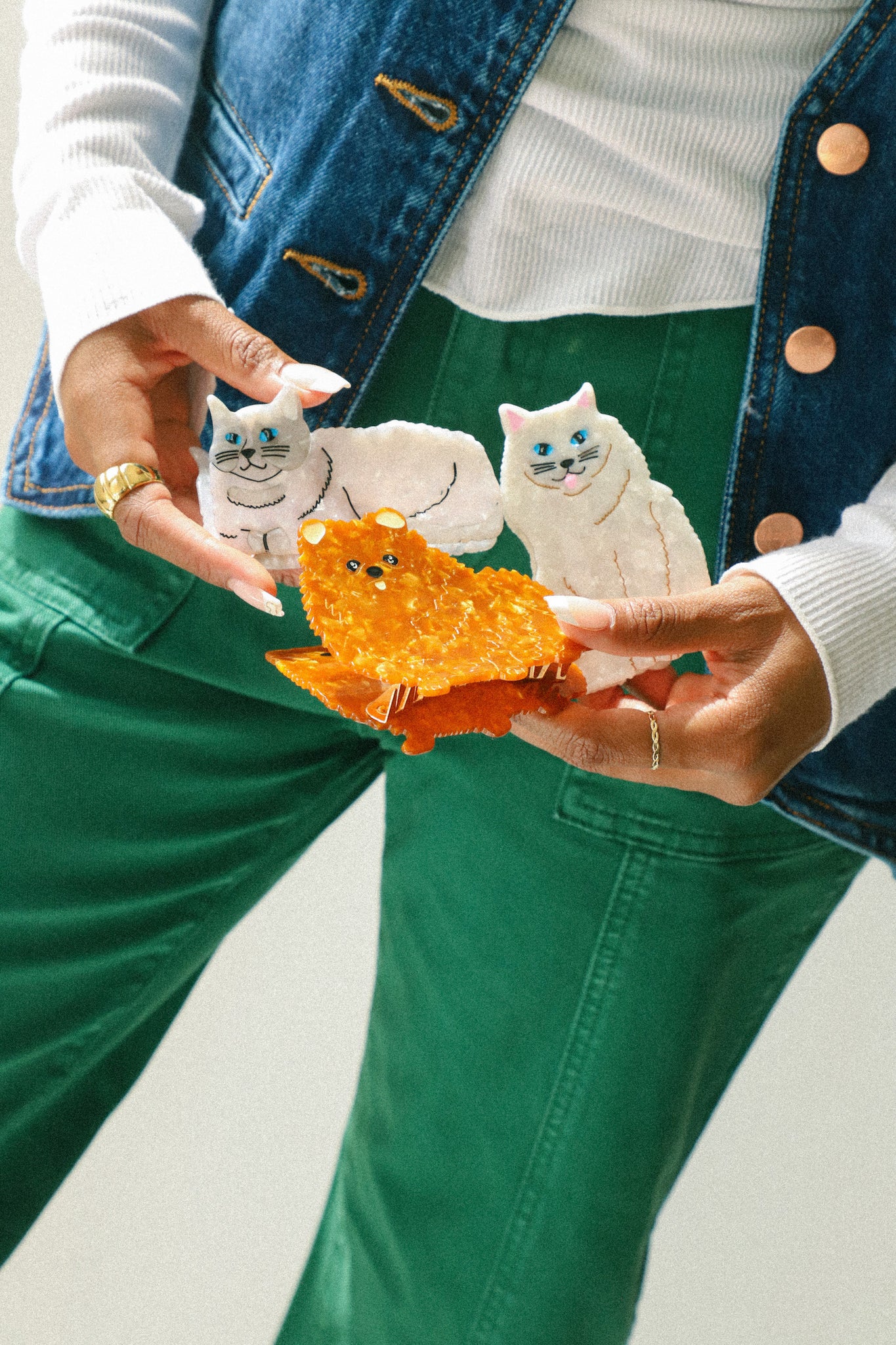 This Persian Cat claw clip is hand painted by the Solar Eclipse artists. Carefully crafted from cellulose acetate - an eco-friendly, biodegradable material made from recycled wood pulp. The claw is double sided, for a perfect look from all angles!