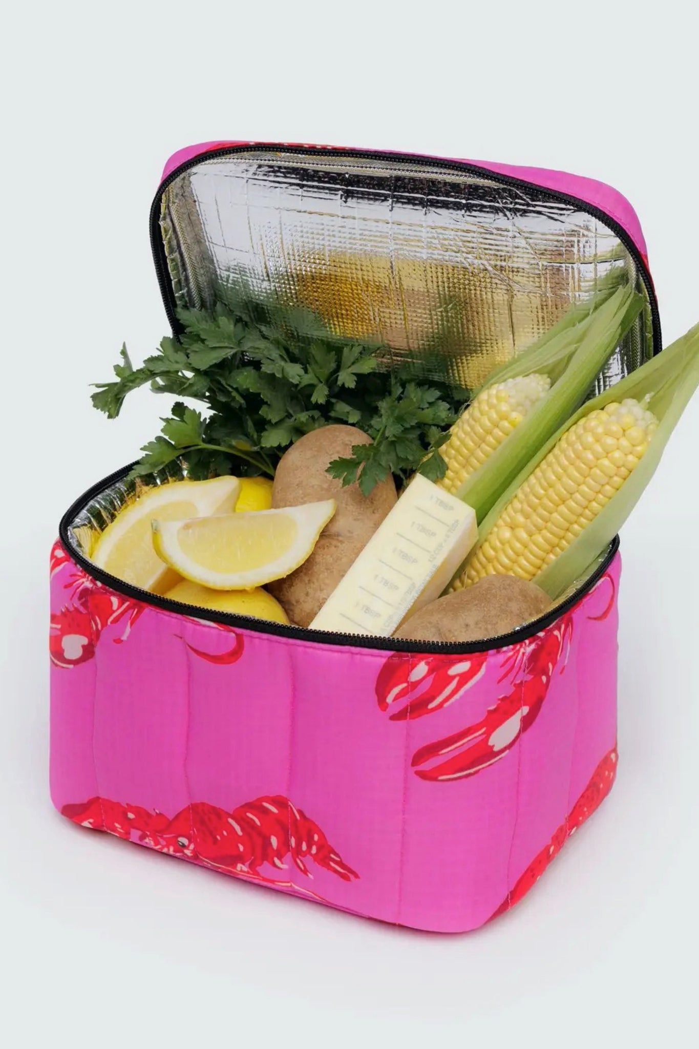 Pink Lobster Puffy Lunch Bag
