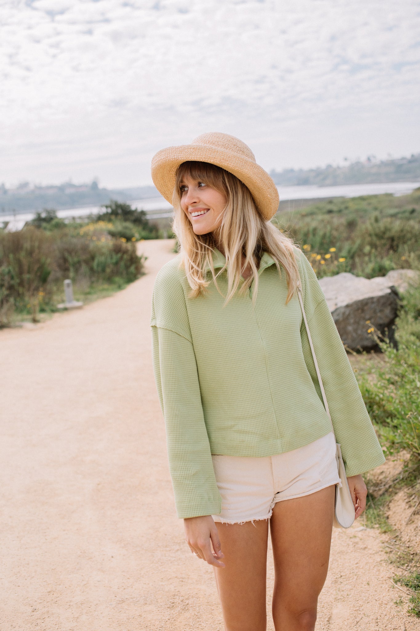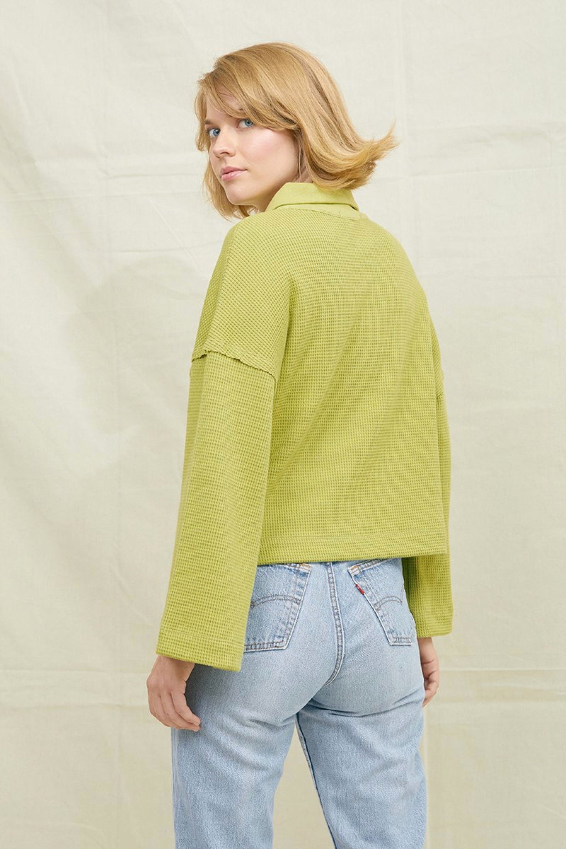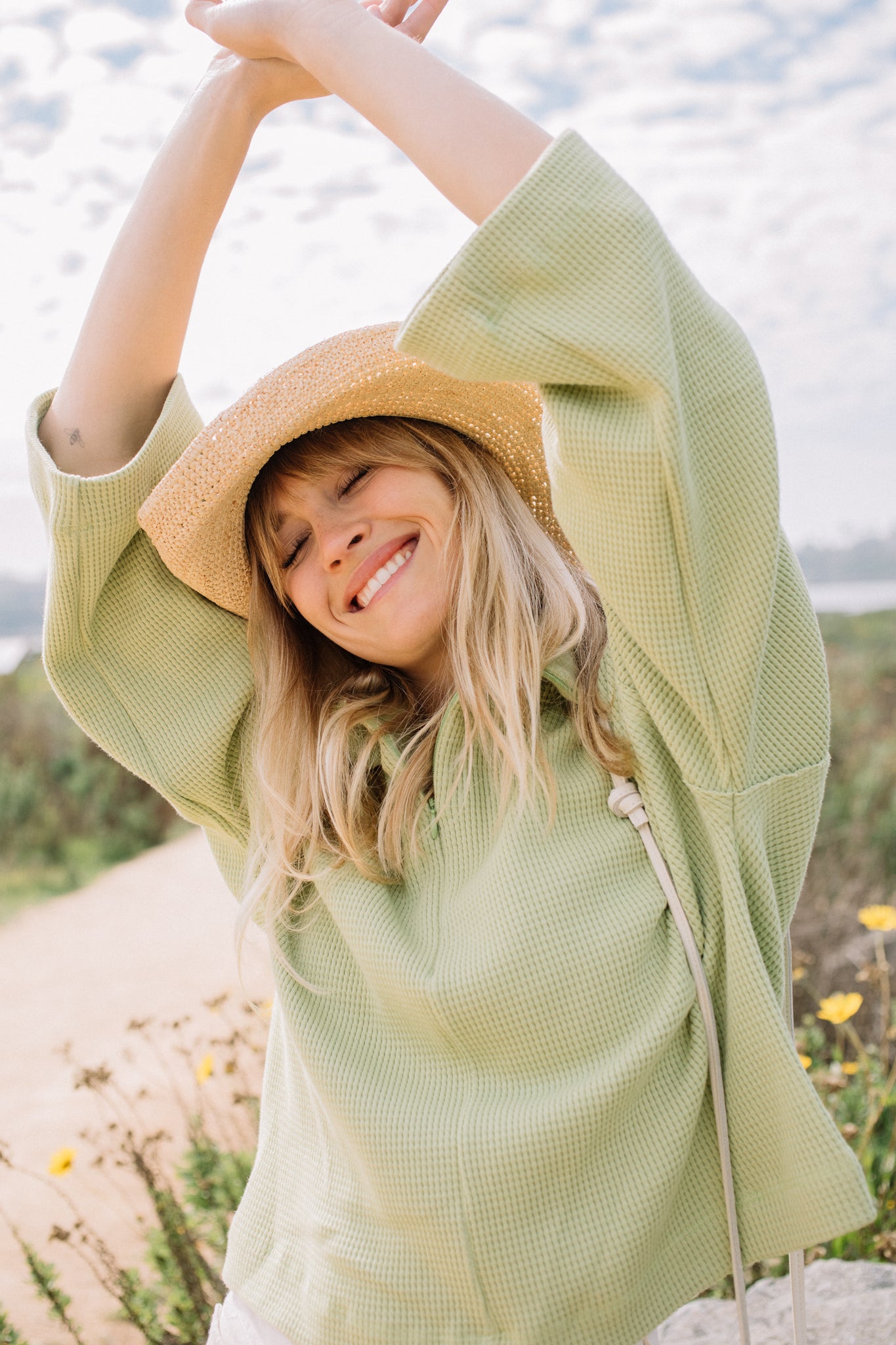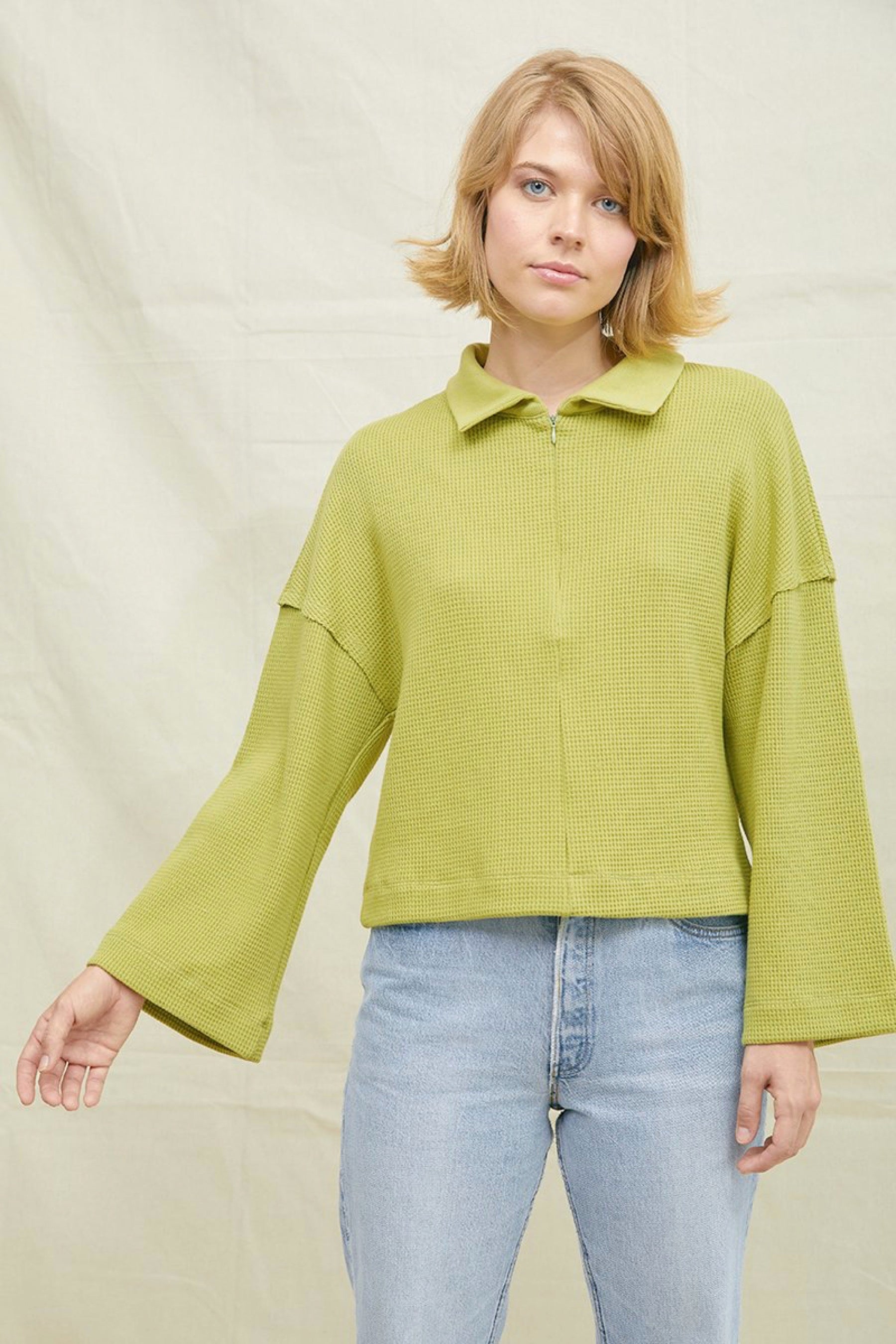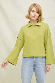 Made in the raddest organic cotton thermal material and with a relaxed sweatshirt feel. This is your go-to piece for those summer nights. Features a front zipper, collar and over sized sleeves