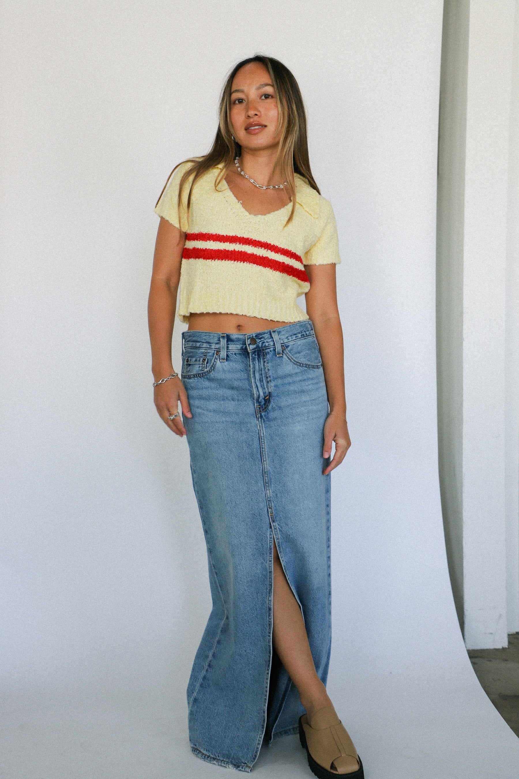 Few styles are as versatile and easy as a long skirt. Casually cool and a little '90s, this Column Skirt features a flattering mid rise, an ankle-skimming length and a playful slit right down the middle.