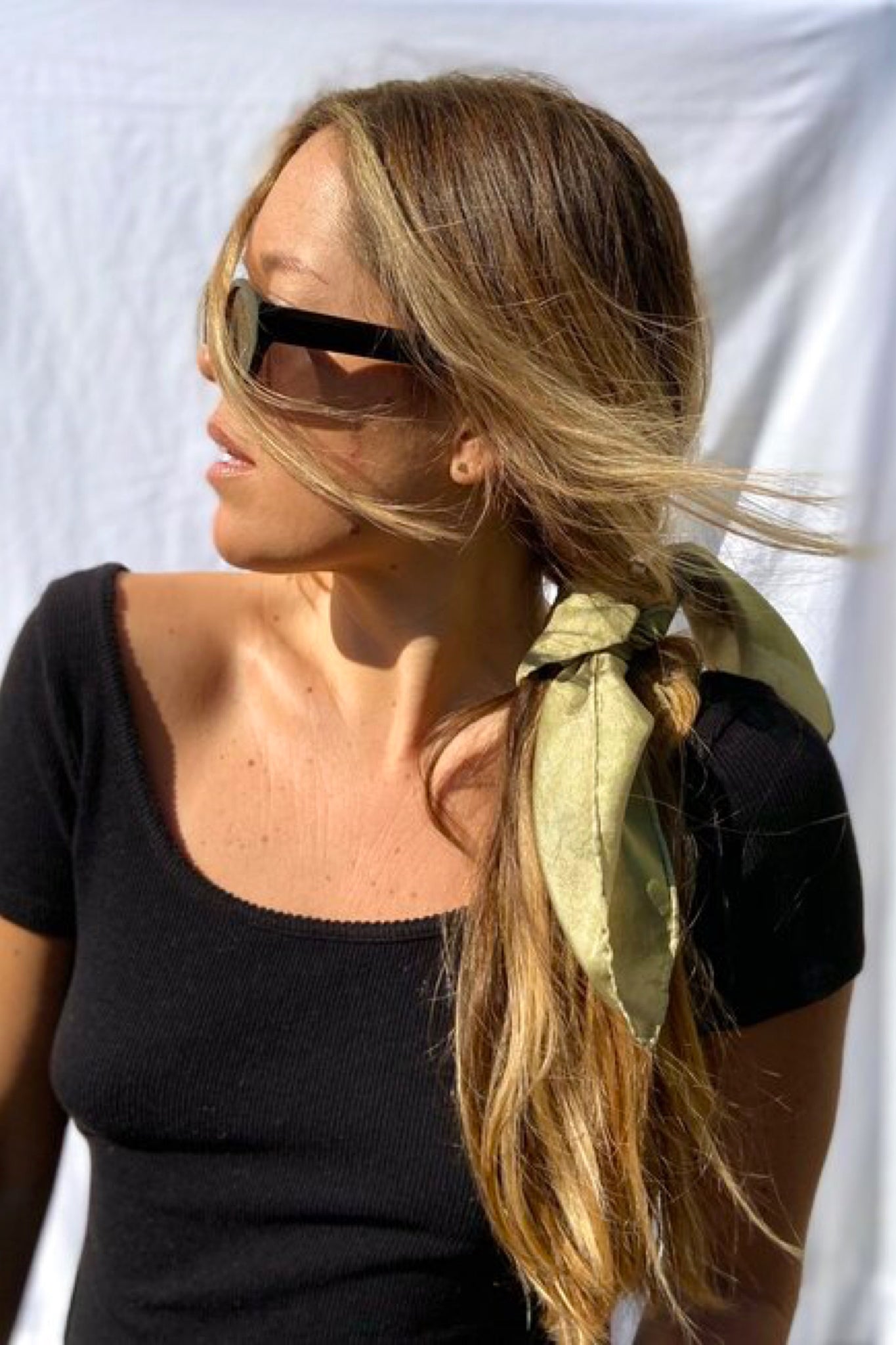 Dyed with onion skins on Habotai silk. These bandanas are perfect tied around your neck, in your hair, on a purse strap or as a face mask.