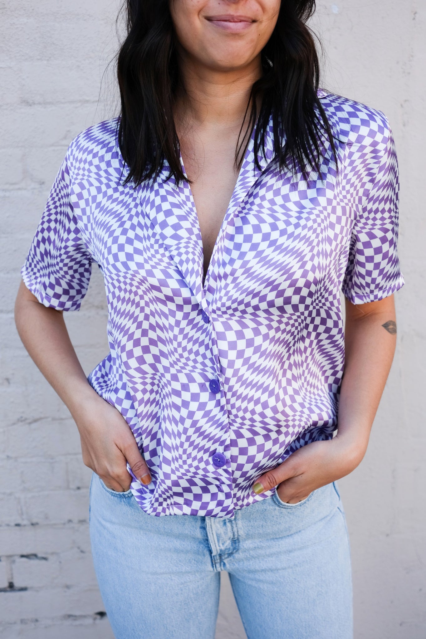 The Reese is a collared, vintage-inspired fully printed satin bowling shirt that we are fully obsessed with. Wear with a mismatched print, or your fave vintage jeans! Printed in collaboration with KJP. Finished with 100% sustainable buttons, made from nuts!