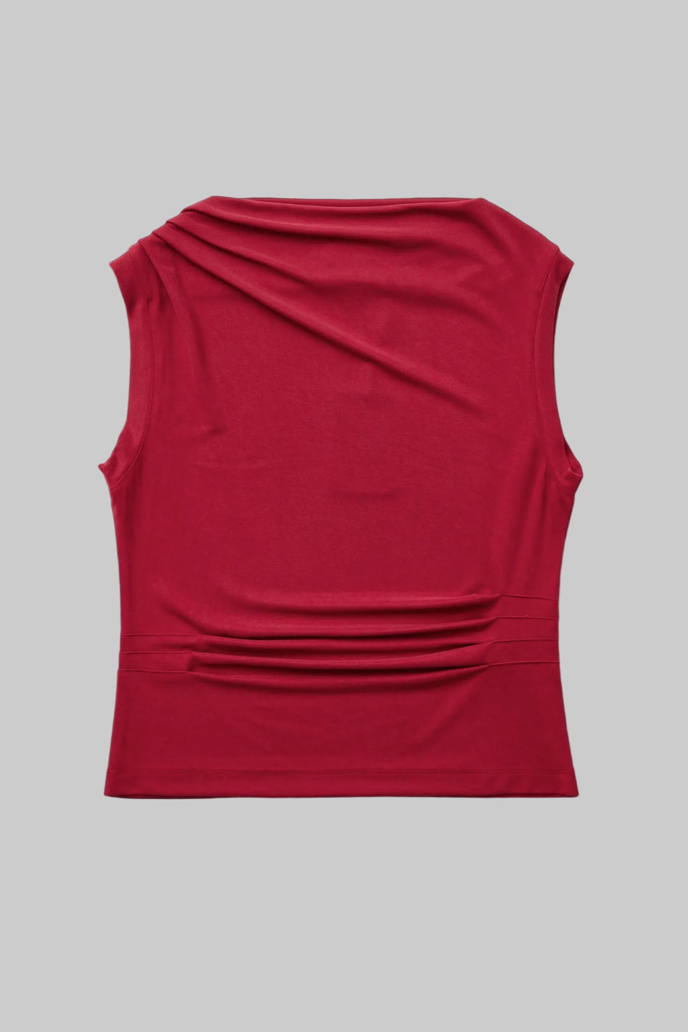 Own the room in this bold raspberry tank that commands attention. The swooping cowl neck makes a statement, while asymmetric pleats create striking visual contrast and movement.