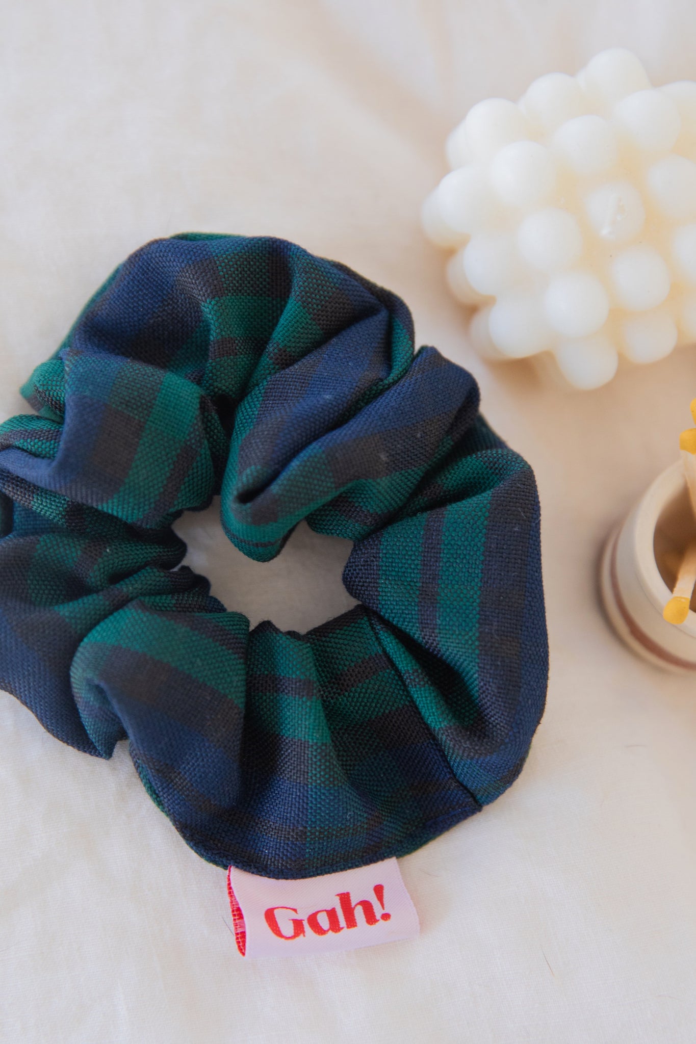 There's a reason scrunchies are still in style. An iconic look and easy outfit-maker, this regina plaid scrunchie keeps your hair out of your face and does so without pulling your hair so tight it hurts. The whole package. Made in San Francisco.
