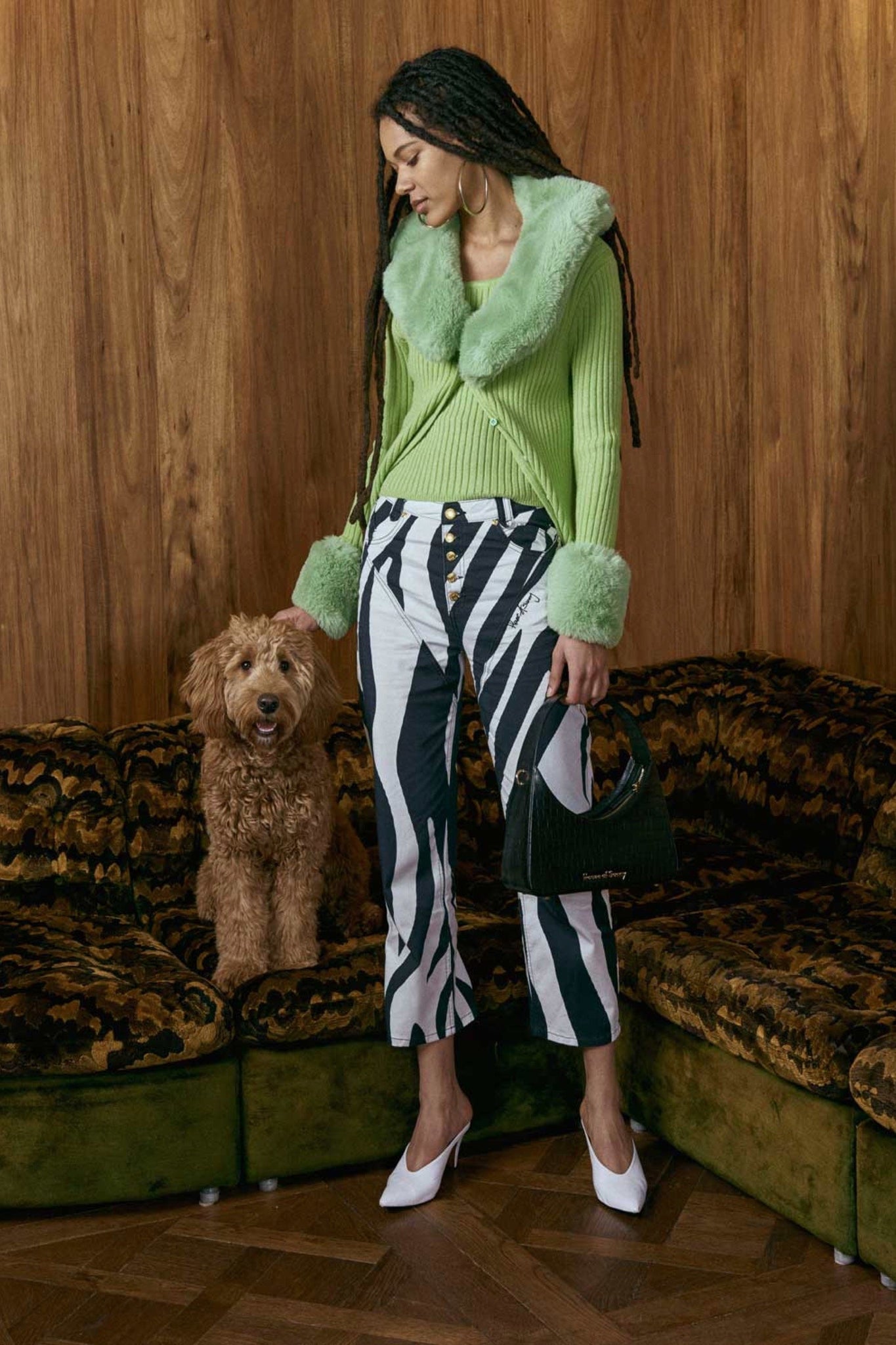 Wave cut denim exclusive to House of Sunny in the new rewa print. Button front and brass hardware.
