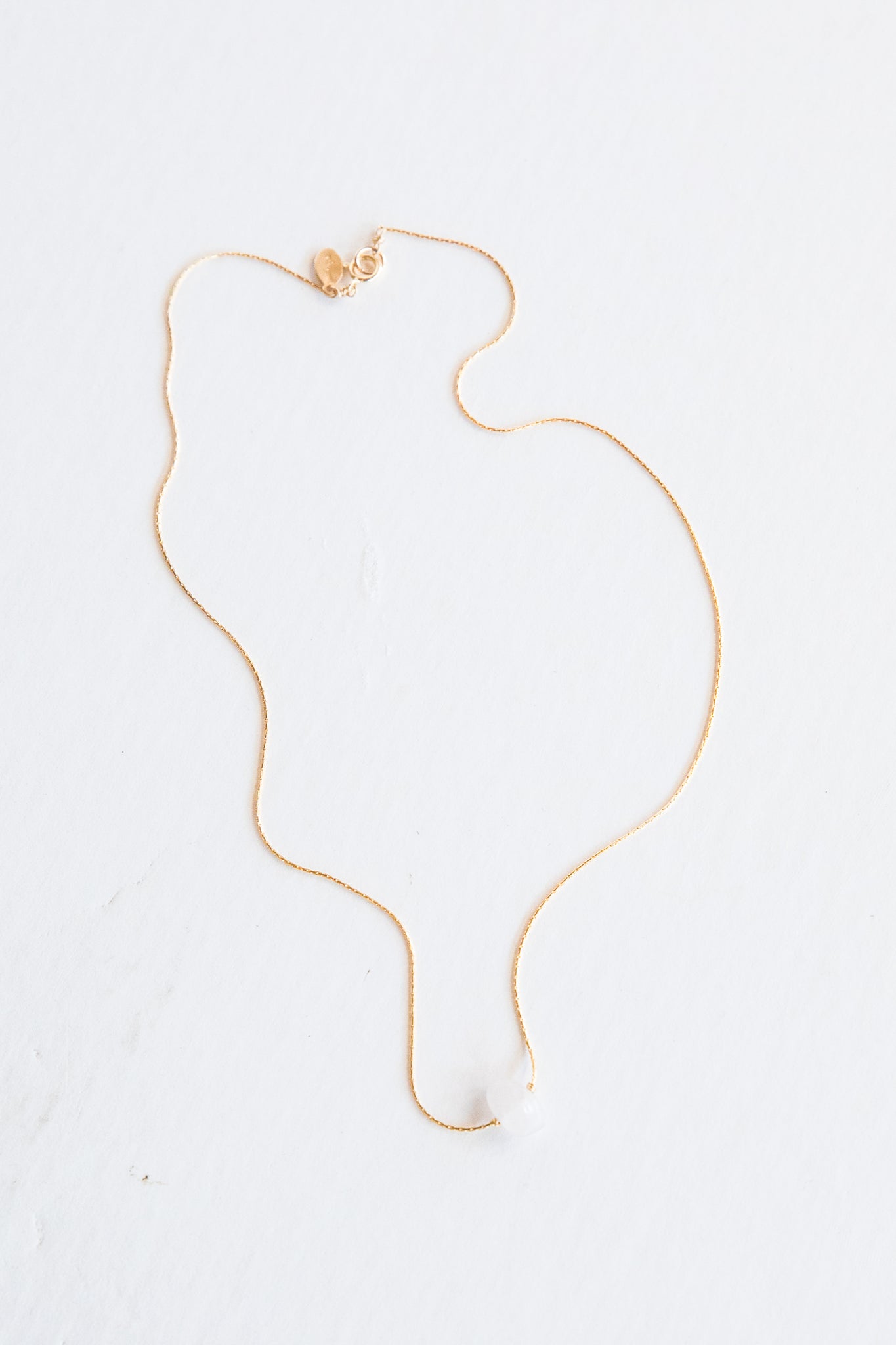 Rose Quartz gemstone on a simple gold snake chain. Handmade in Long Beach, CA.