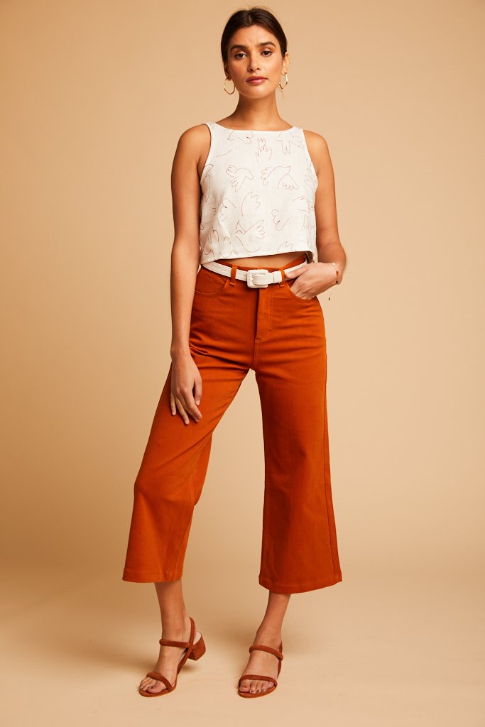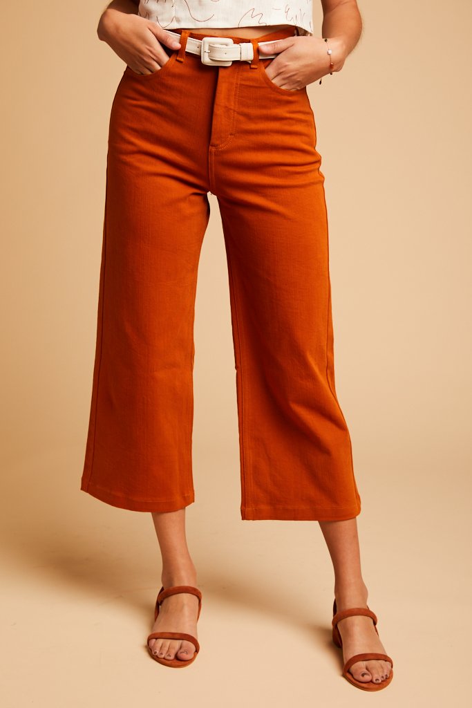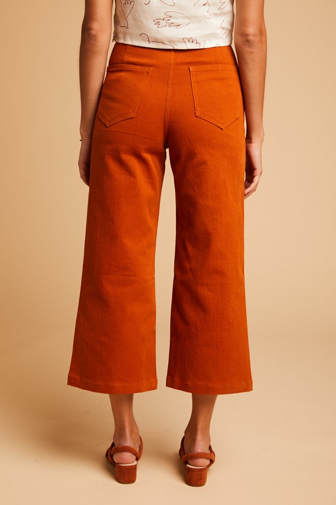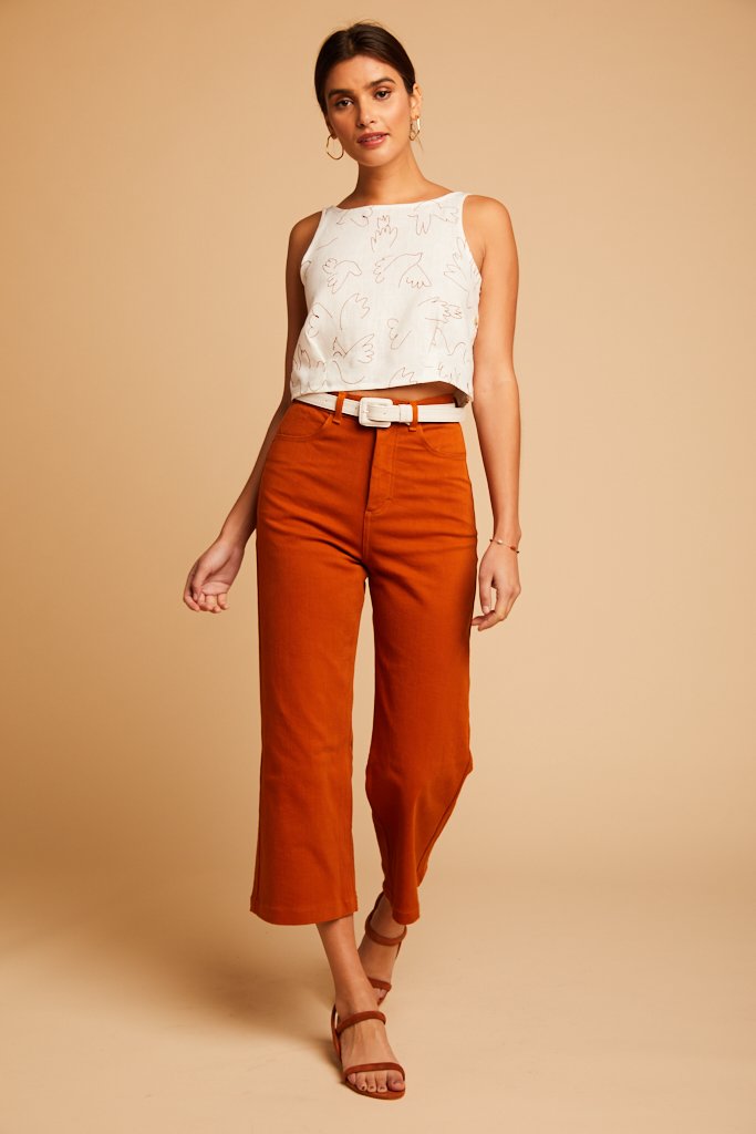 The Flora is a cropped wide leg pant with an 11" rise and chunky button. What more could you ask for? Pair these with anything and it's a win.