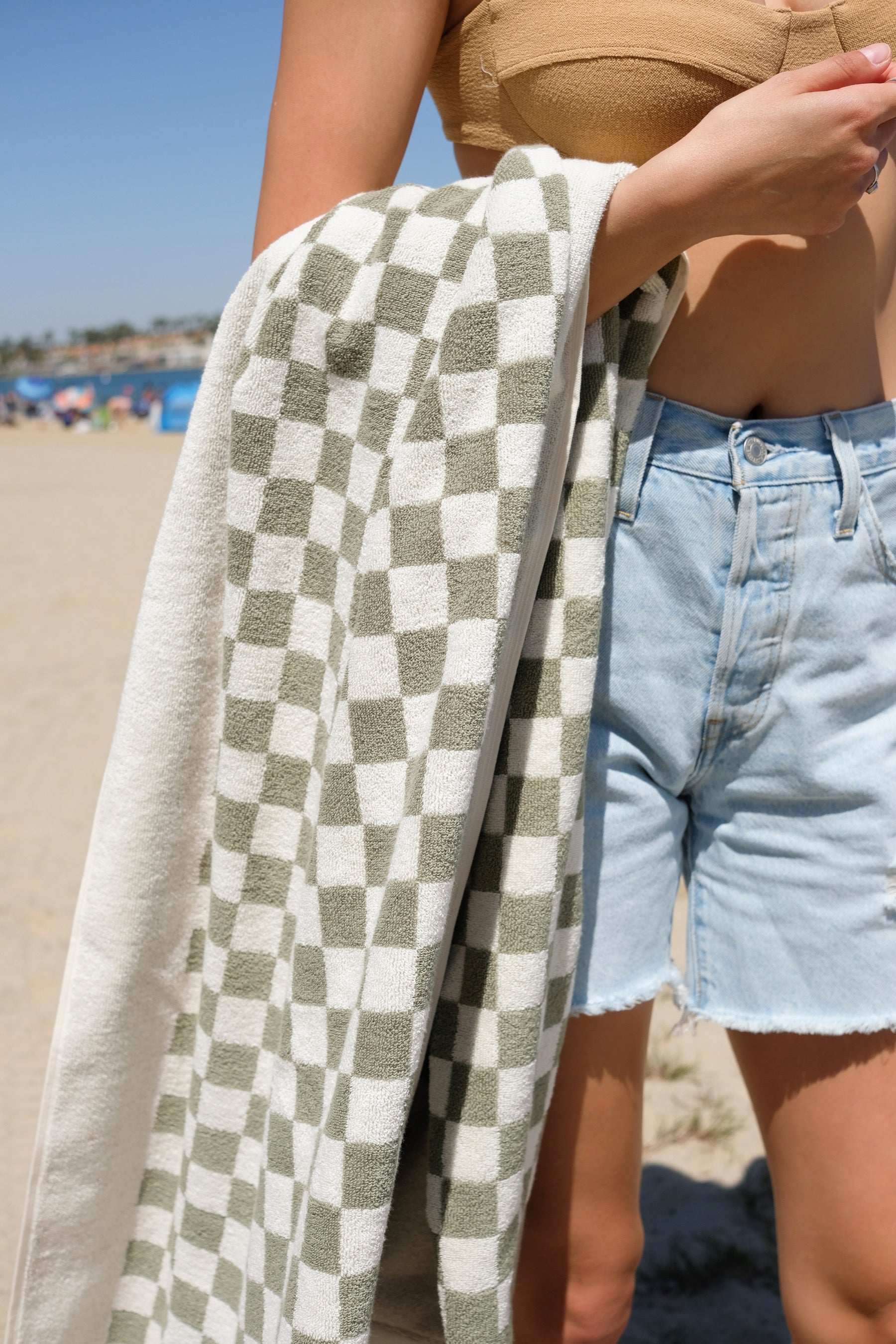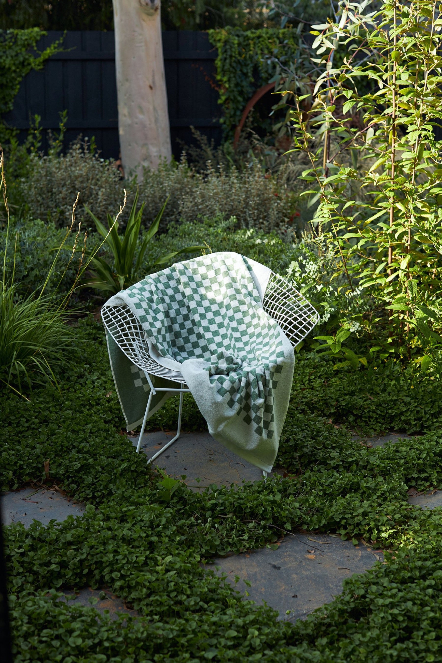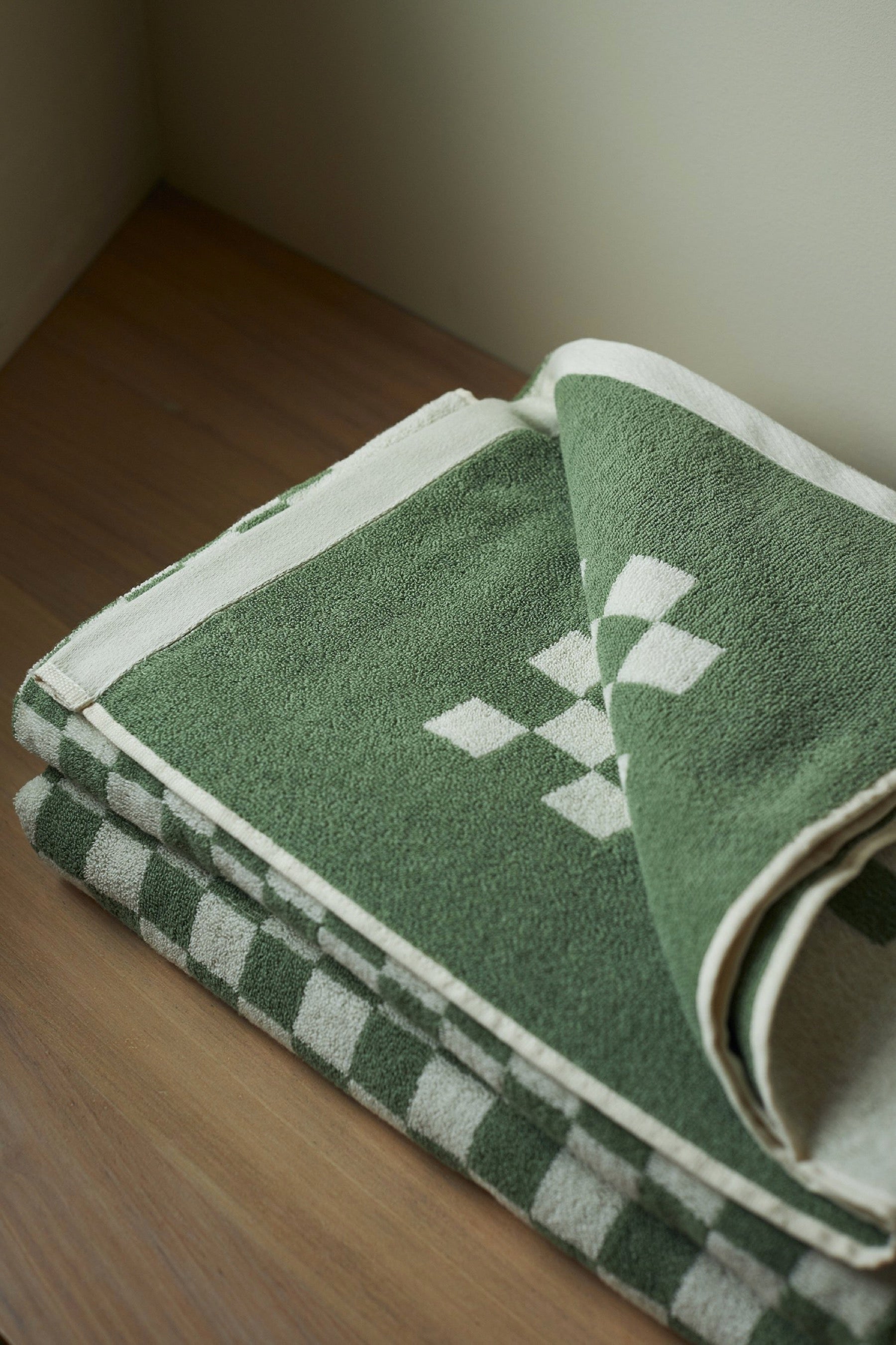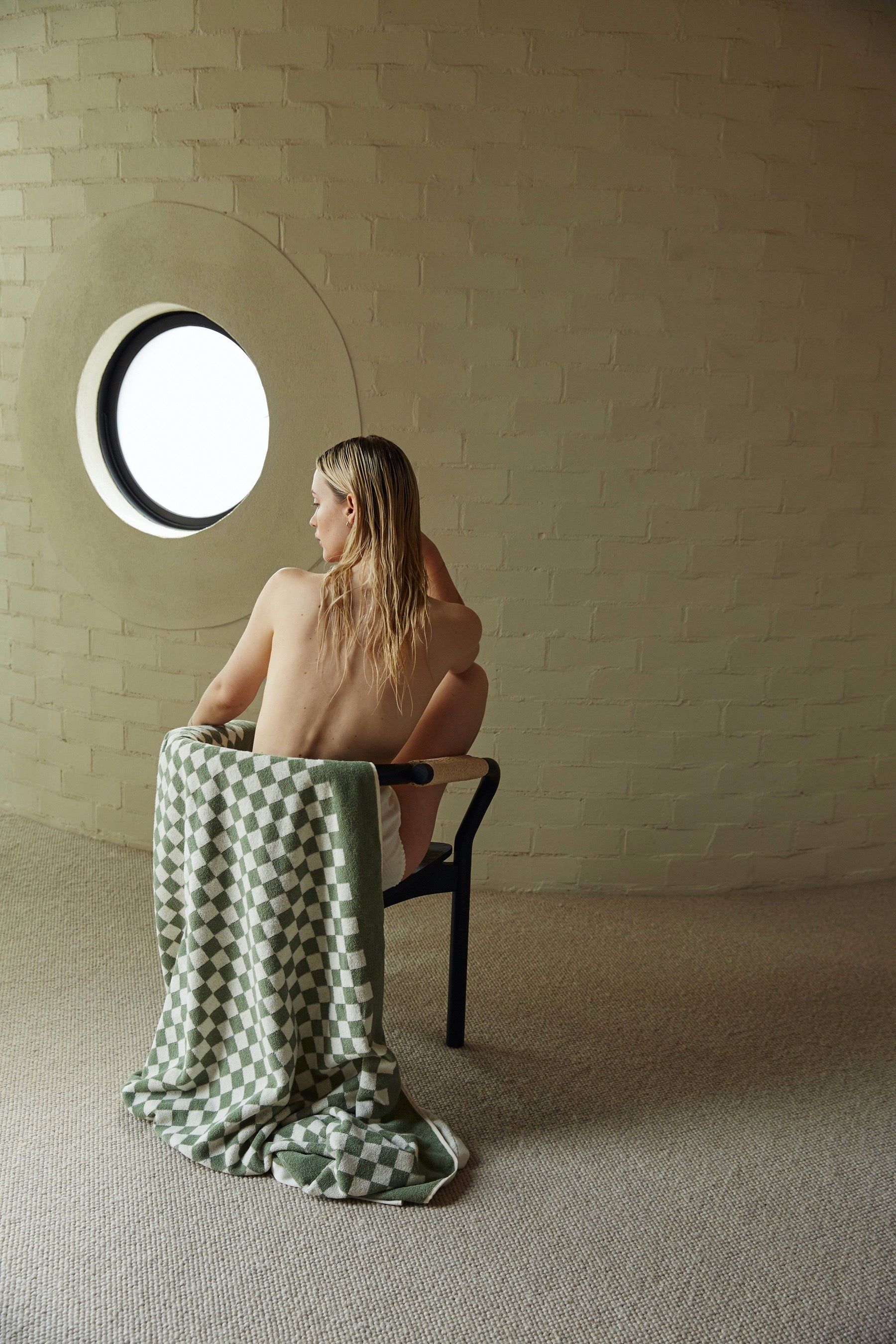 This playful towel in checkerboard print, synonymous with the Baina brand features a reversible colorway. The Sage checkerboard contrasting against the Ecru makes a statement in any bathroom or on any beach. Designed in Australia & made in Portugal by a Global Organic Textile Standard (GOTS) certified manufacturer.