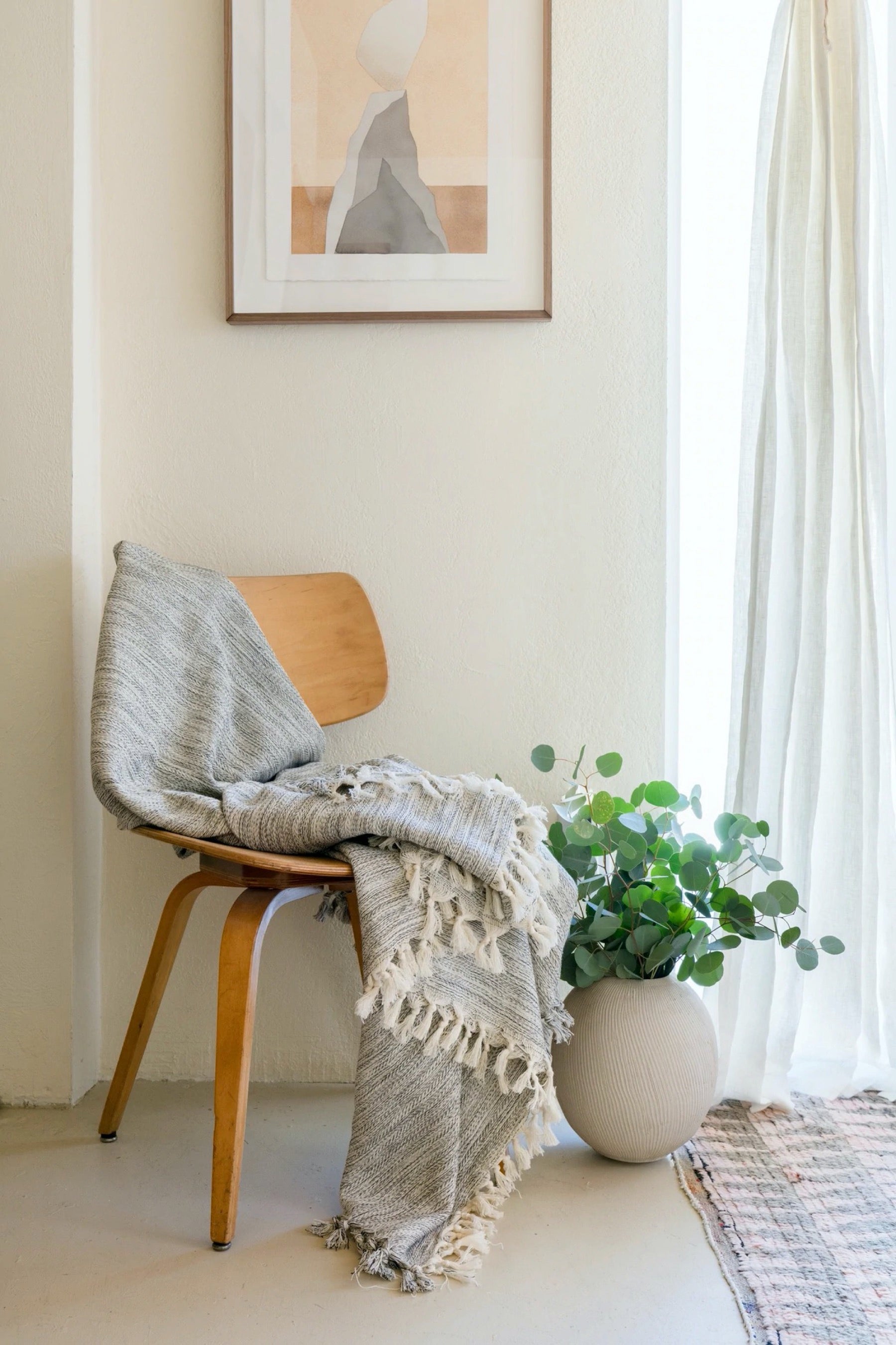 The softest bedspread or the coziest throw for your couch with a midcentury modern look and hand crafted tassels.