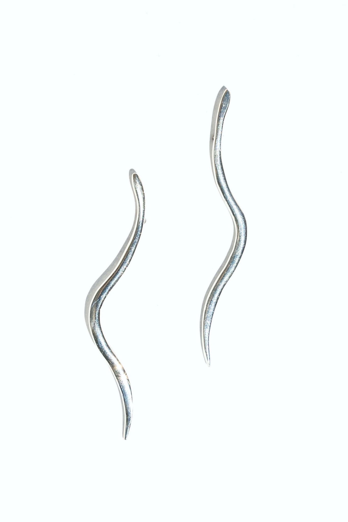 These elegant and lightweight earrings are inspired by the long fluid shape of a seaweed blade (leaf). Hand carved and cast with a high polished finish.