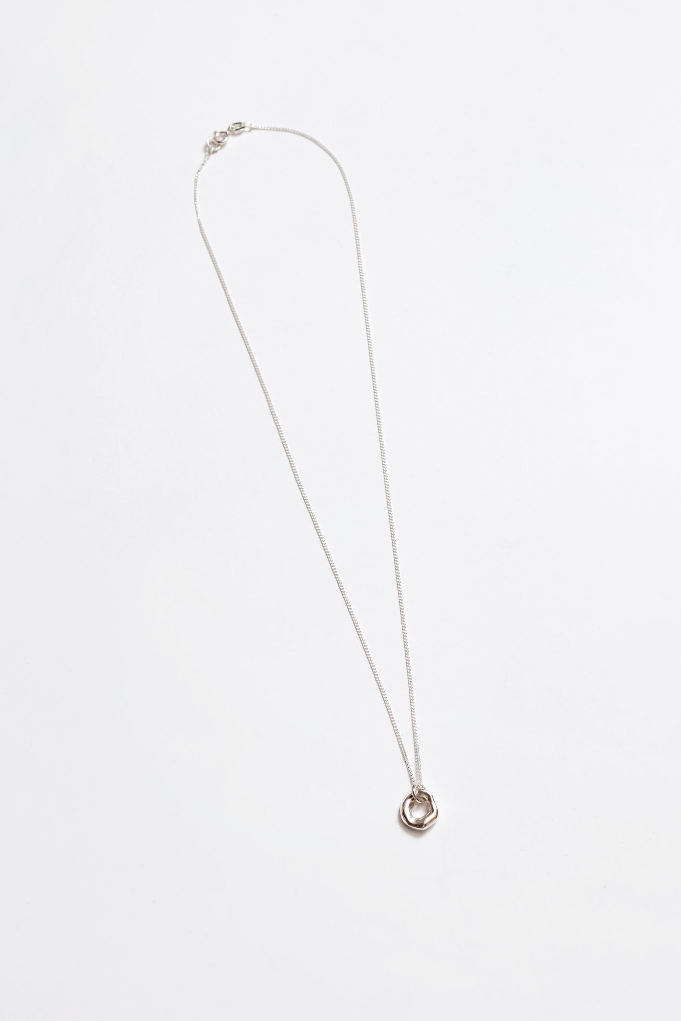 Simple silver chain necklace featuring a textured oval pendant. Made with recycled metals in Canada.