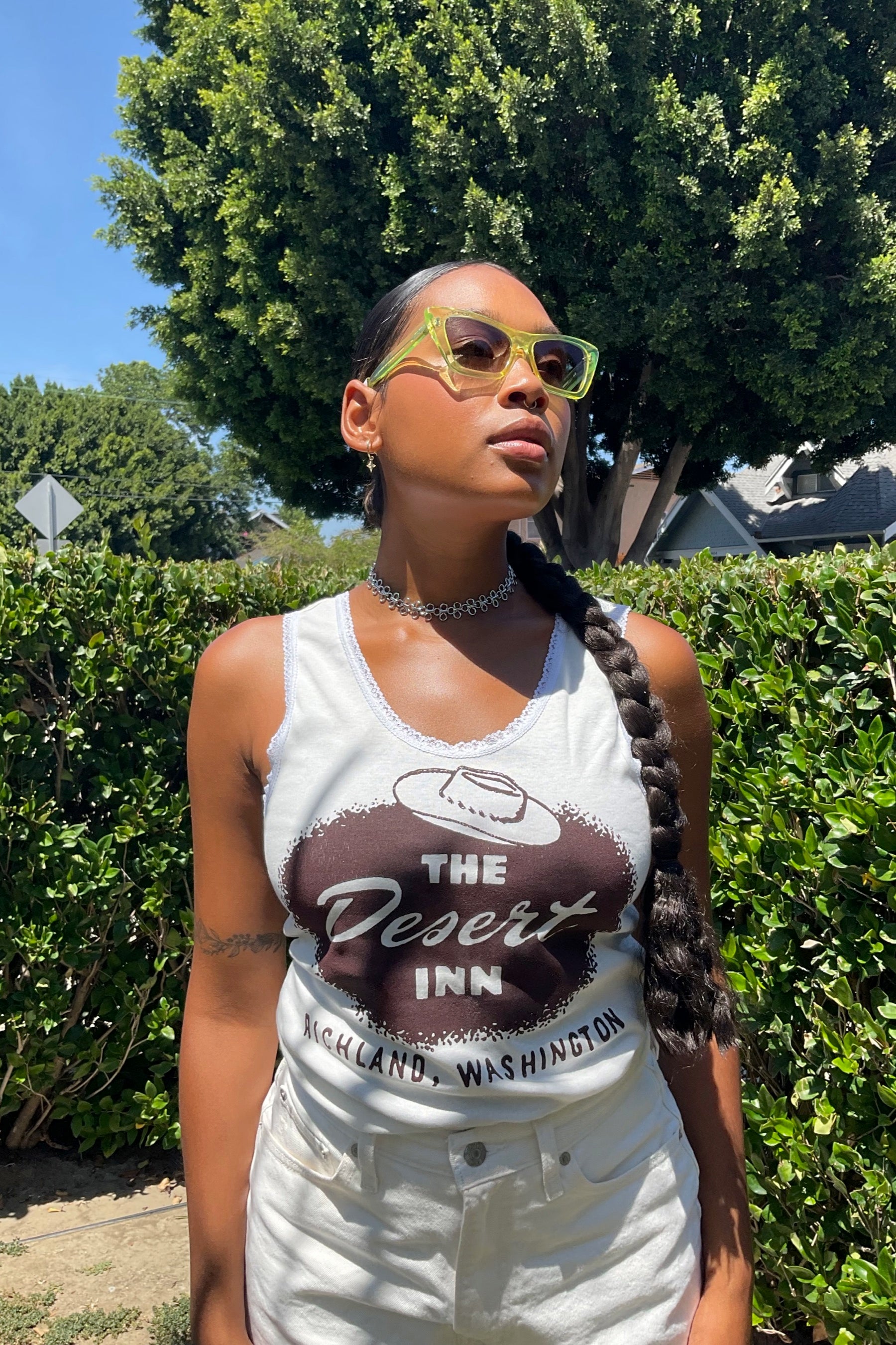 Features a woven filigree chain choker necklace. Finished with a lobster clasp closure and extender chain. Designed in Los Angeles.