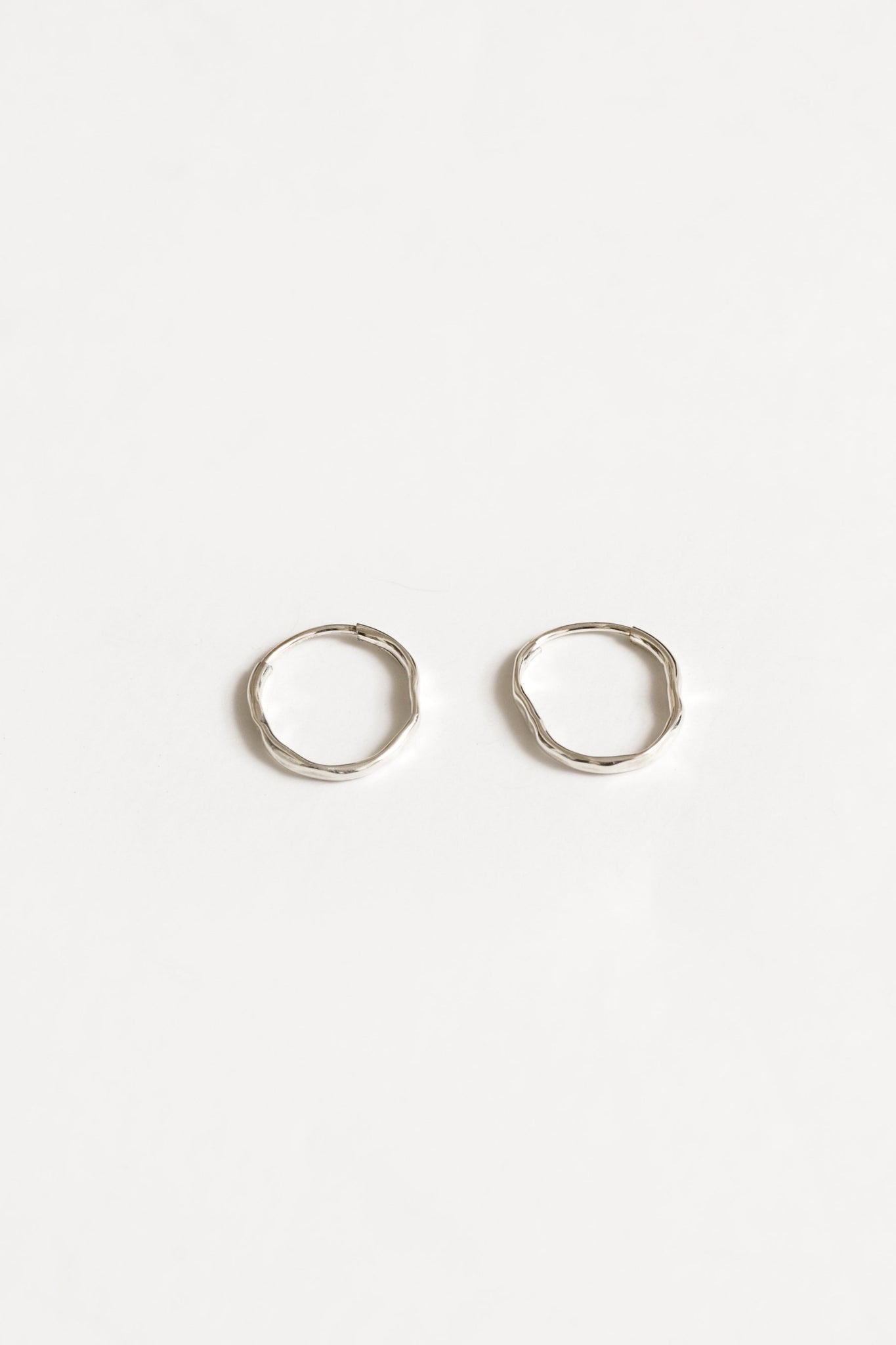 Organic shaped endless silver hoops.