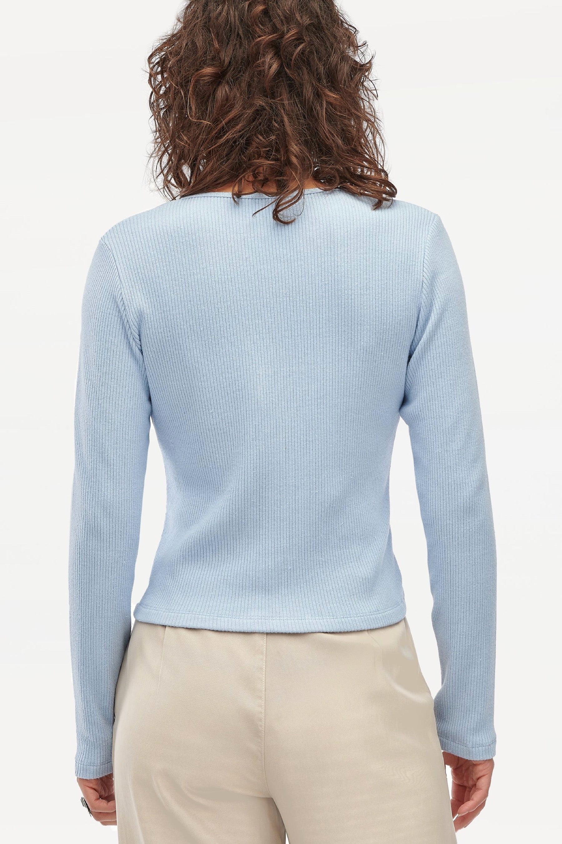 A sweet little cardigan with a v-neckline in super soft, textured rib. Super cute worn fitted or sized up for a cozier look. A wardrobe essential.