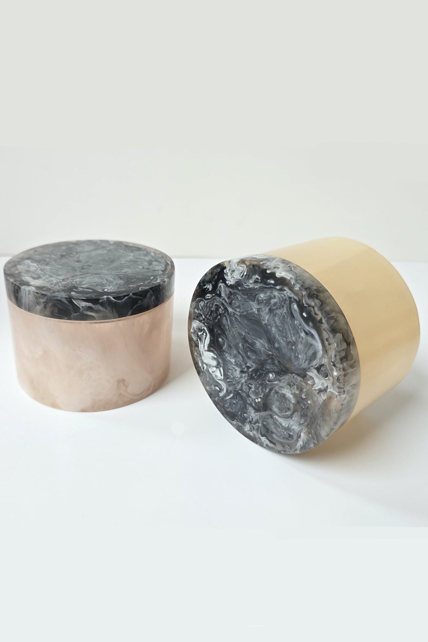 The vibrant, swirled design of these resin canisters is a result of carefully chosen colors. Each piece is hand-poured individually, so no two pieces will ever be same. Great for indoor and outdoor entertaining alike.