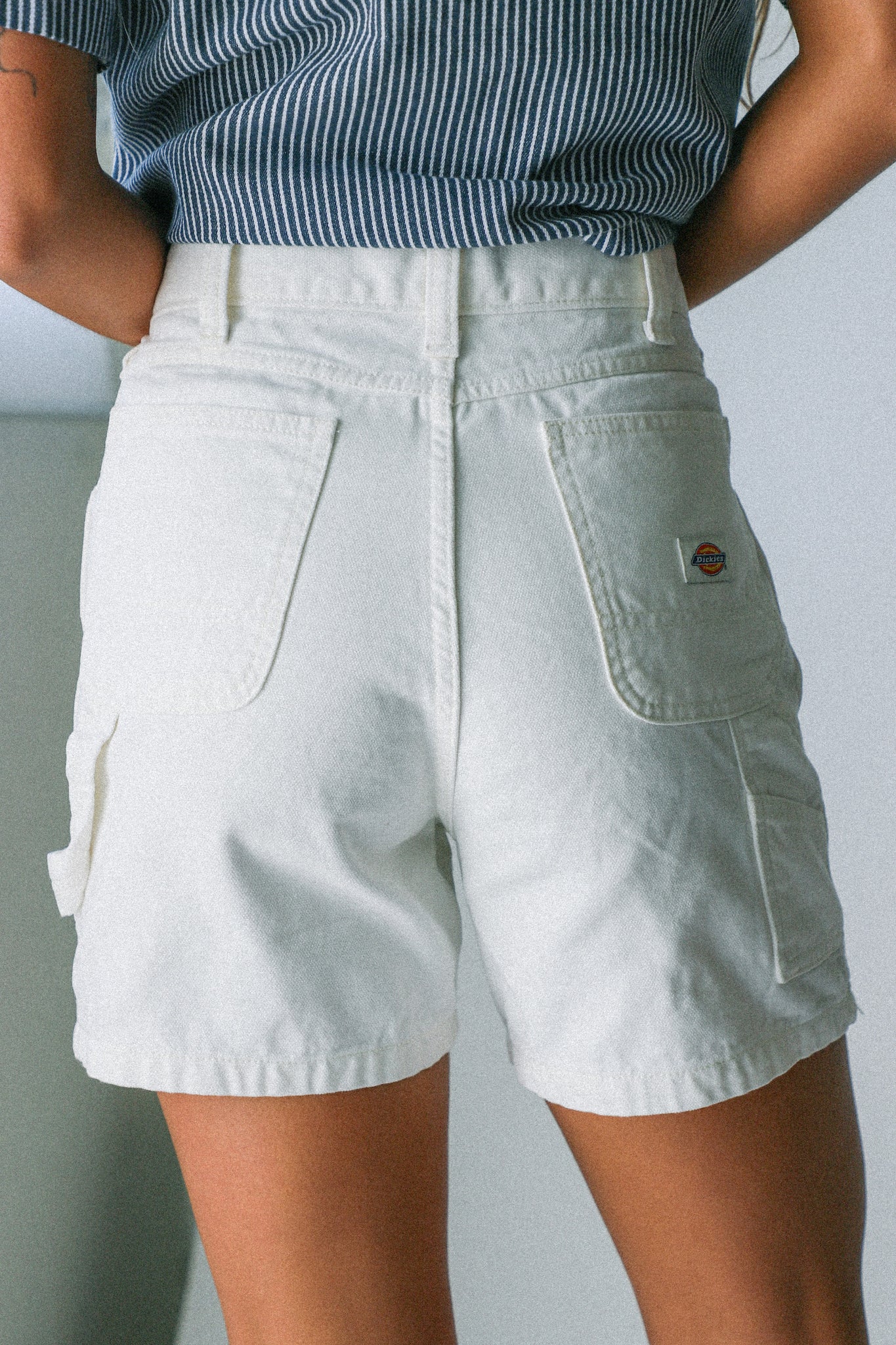 Made from a durable duck canvas fabric, the women’s Dickies carpenter shorts feature an authentic utility detailing. The high-waisted carpenter style has an A-line opening, 5” inseam, a hammer loop, and a tool pocket for function and style.