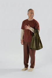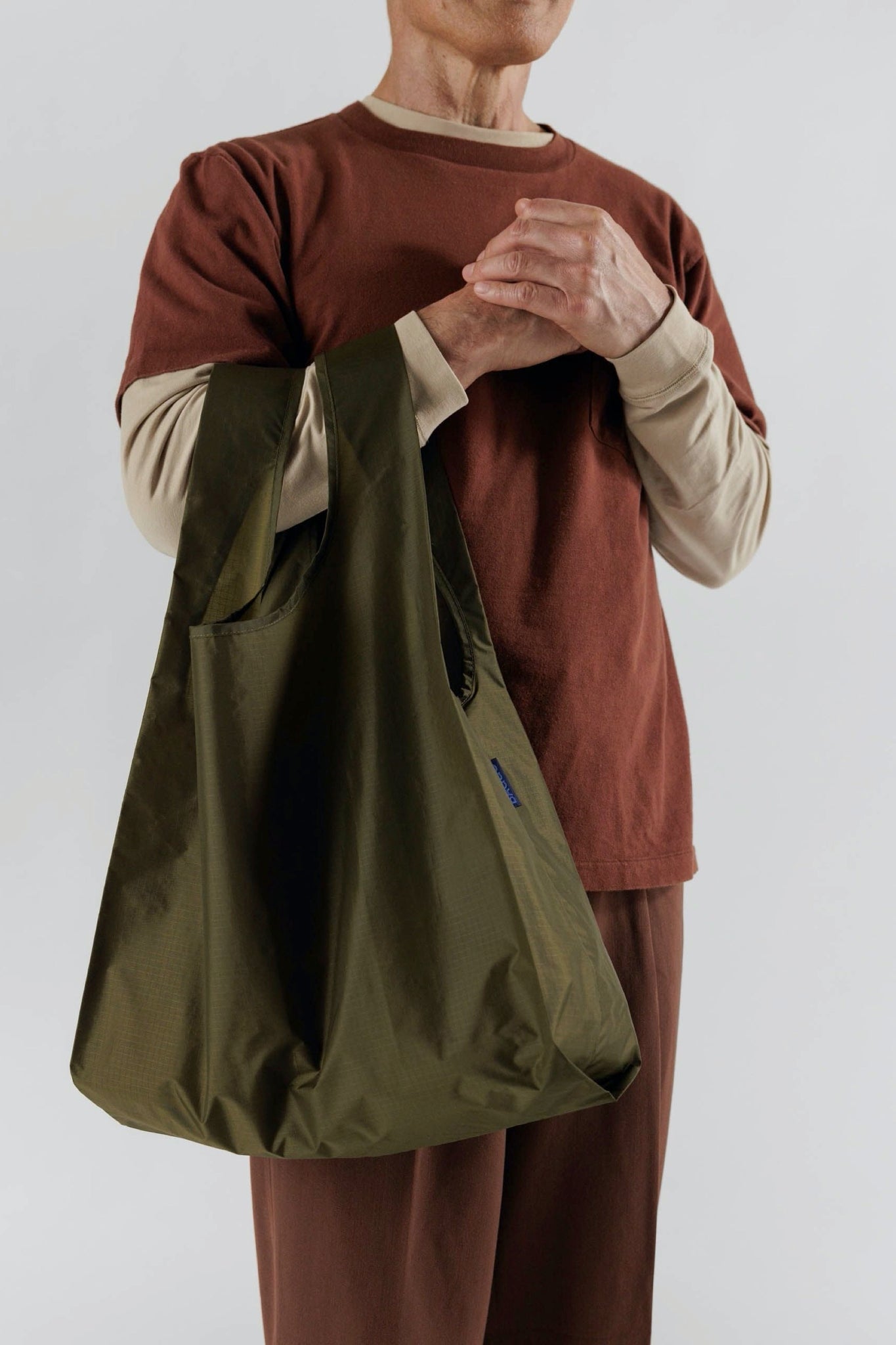 This reusable bag is not just for the grocery store. Carry in your hand or over your shoulder. Holds 2-3 plastic grocery bags worth of stuff. Folds into a flat 5 in. x 5 in. pouch. Holds 50 lbs. Machine washable.