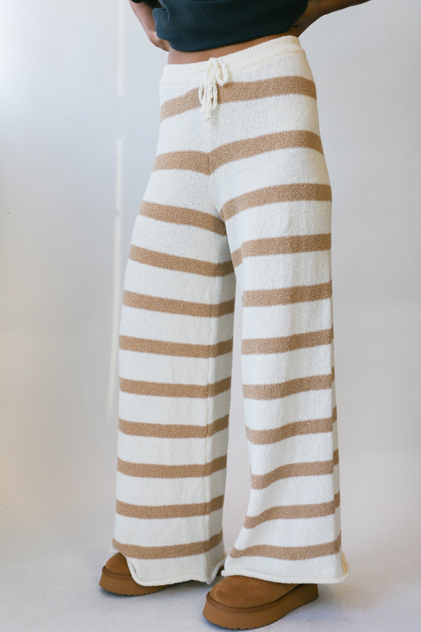 Get ready to stand out with our Tan Stripe Jordan Pants. Featuring a wide and eye-catching stripe pattern, these knit pants are perfect for making a bold statement while staying comfortable.