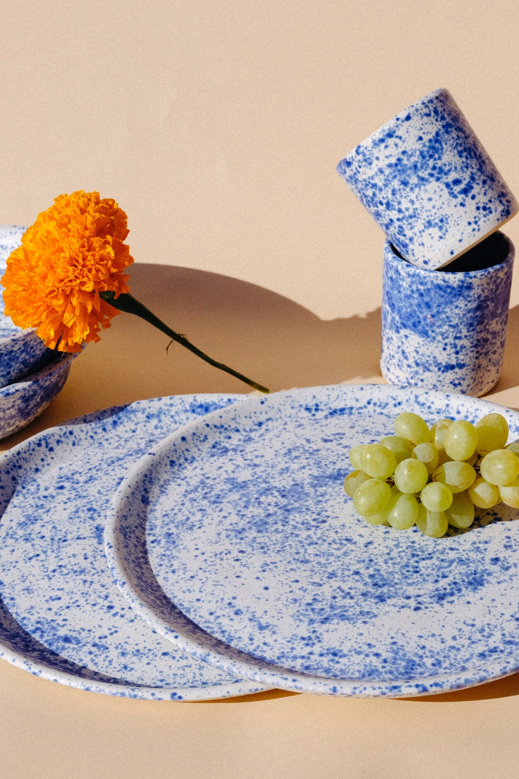 Matte blue splatter glaze tumblers, sold individually.