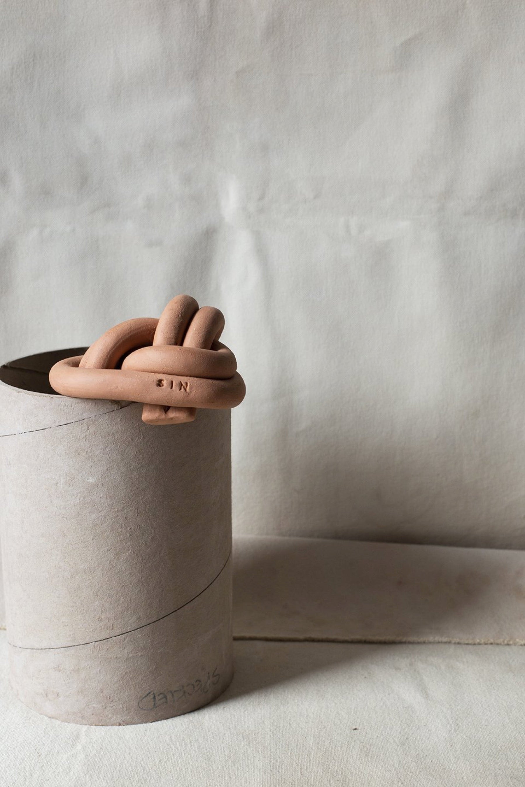 Our ornamental fist-knot is made out of clay and will serve you well on a windy days when papers and napkins cannot be trusted to sit still. It’s also the perfect topper to a stack of books that demand to be adorned.