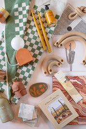 This little light reminds us to take time to wonder. Inspired by the Mima Mounds of southwest Washington. The small, domelike mounds are a natural phenomena—the unknown origins of which still have geologists scratching their heads. Each design mimics the terrain while the light bulb represents the position of the sun.