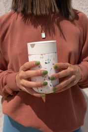 Enjoy coffee on-the-go, while channeling the latest trends. From tile, to tabletops, to textiles, we’ve spotted speckled terrazzo patterns at high-design concepts across the country. Our limited edition Porter Mug taps into the trend, wrapping our signature reusable ceramic mug in boldly printed matte silicone.