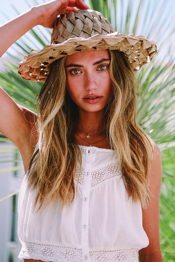 This woven palm leaf hat will have you dreaming of a tropical beach vacation. Hand woven by artisans in the Dominican Republic. The color of hat will fade over time as the leaf ages. This is supposed to happen and helps contribute to the unique character of each hat.