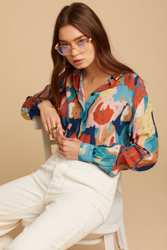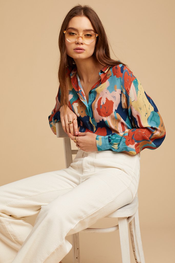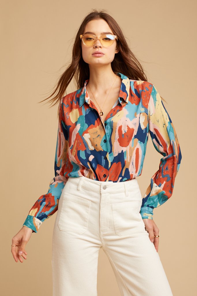 The Painted Tulip Blouse is designed to be worn tucked into your favorite high rise denim and features gathering detail at the shoulder and a button-through front. Designed from a lustrous mix of rayon and viscose, it's finished with a classic point collar and button-up cuffs. Simply tuck into some blue high-rise jeans to uphold the feminine mood.