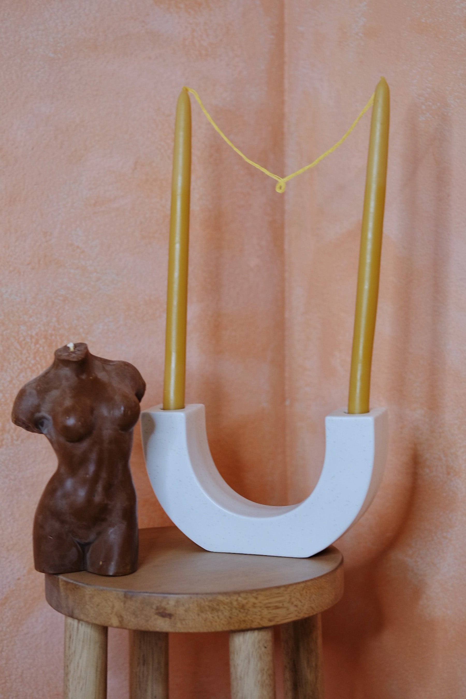 Modern U-shaped candlestick holder that's perfect for adding a unique touch to your home. Fits two standard pillar candles.