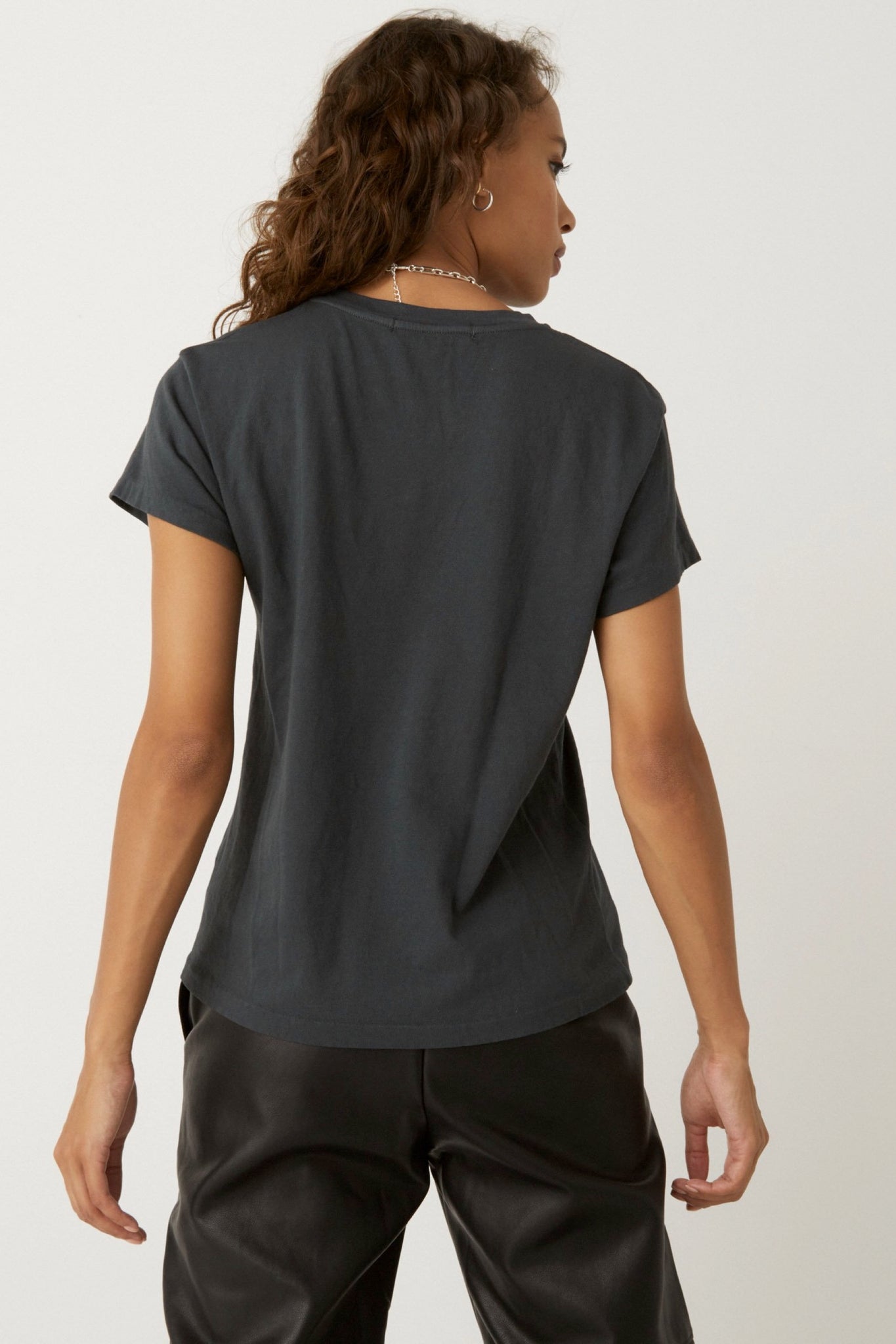 In the early 70s, Martin Guitar was asked to design an all black lacquered D-35 fit for the “Man in Black.” Cash and his well-known guitar went on to jam on stage for the next 20 years. Now, a wildly popular commodity with newly released renditions of the guitar, the Johnny Cash Martin Guitar Tour Tee takes a country spin on Cash’s famous tool of the trade featuring red flocking and a classic vintage blindstitch.