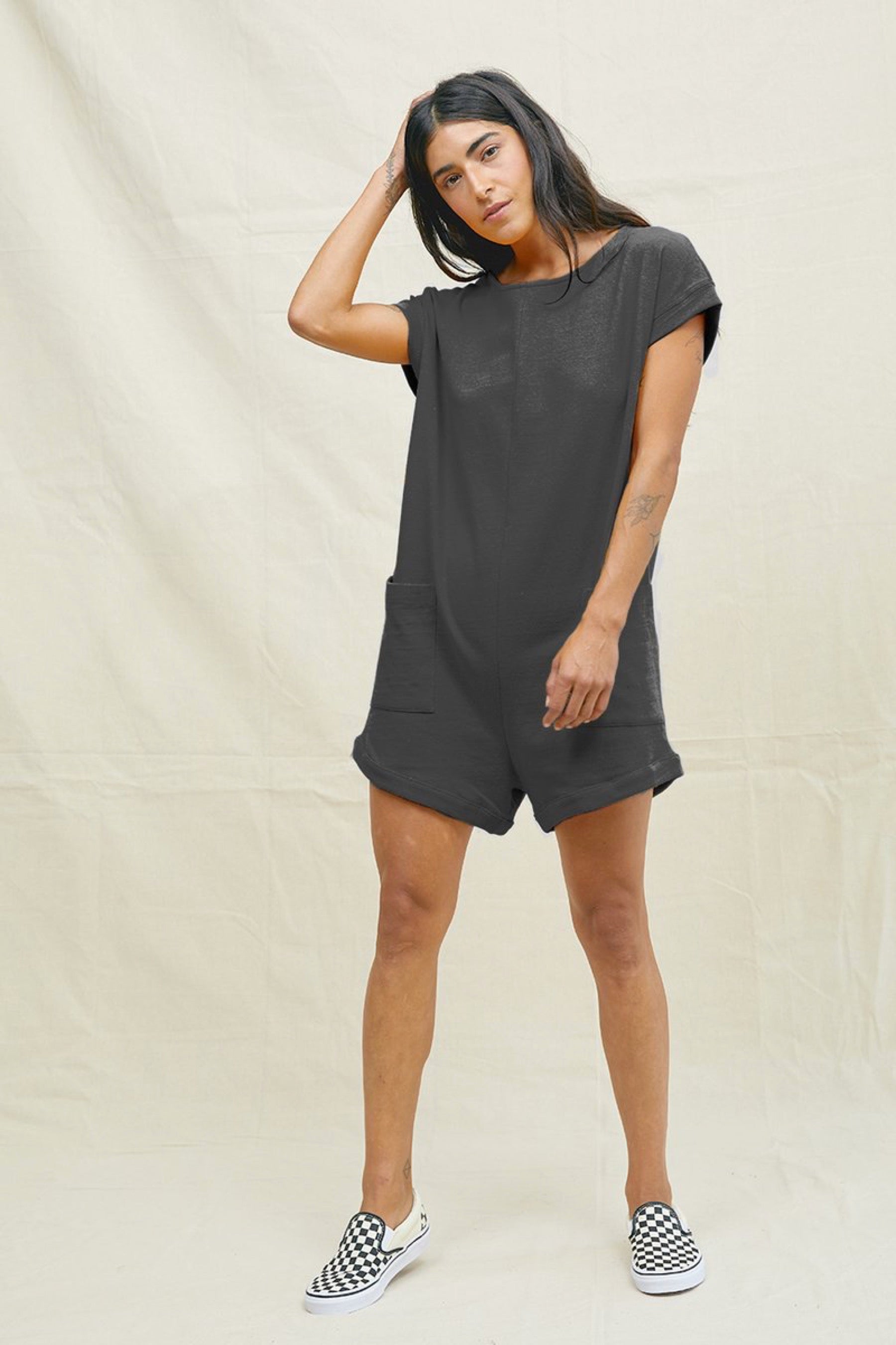 A comfortable fit with front pockets and keyhole closure and made in a luxe heavy hemp jersey. Take it to the beach to the farmers market and everything in between.