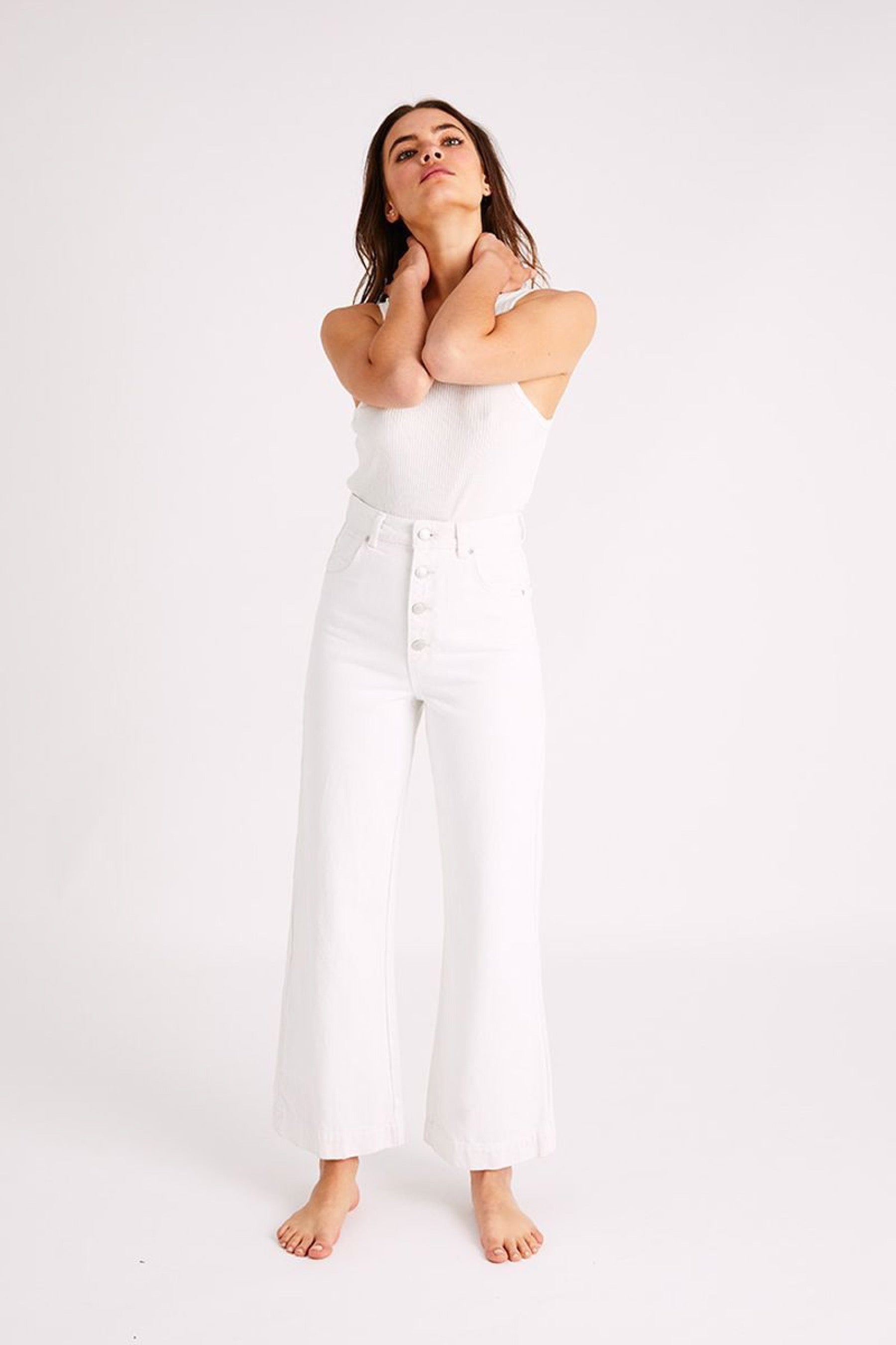 One of the widest legs in the Rolla's family is the Old Mate. This pair features their signature pockets to give an extra cheeky vibe, plus an exposed button front for a sophisticated spin. These are designed to be worn tight and will shape perfectly to your figure with wear. Jump up a size, as these are firm jean.