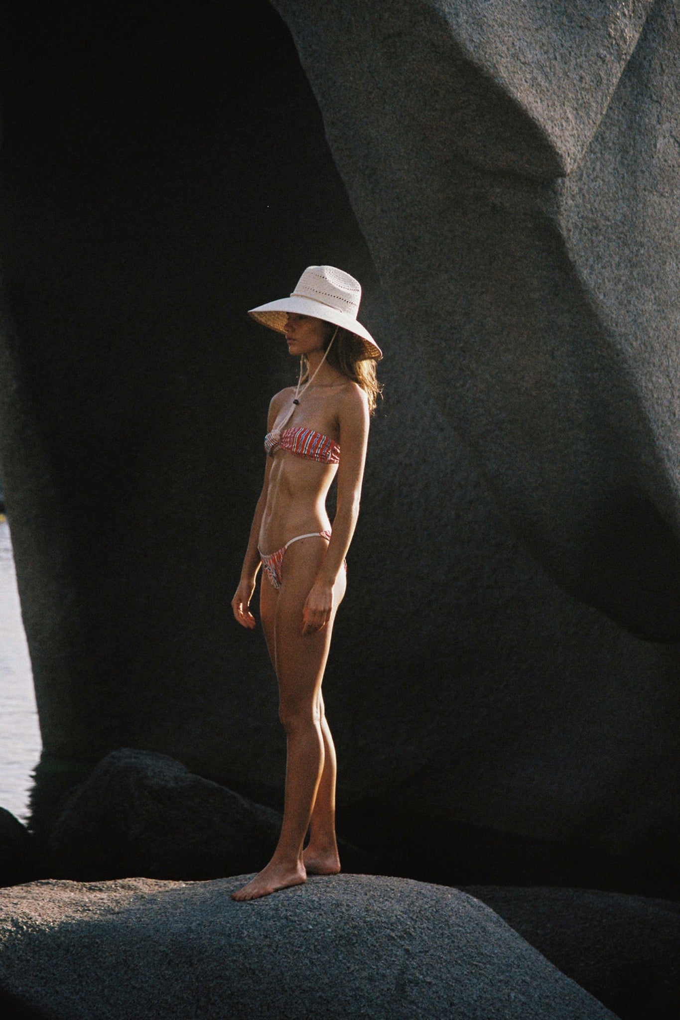 Perfect for the ultimate in wide-brimmed sun protection. Paper straw dome down brim, cattleman’s crease hat with sun freckle crown detail and cotton chin strap. Perfect for those long beach days, hiking or riding your bike.