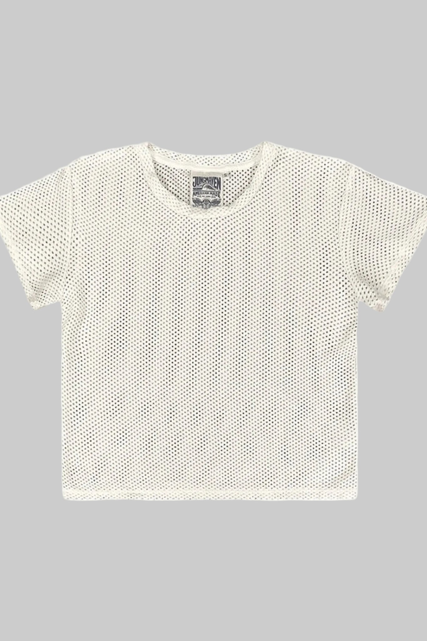 Effortlessly cool meets undeniably chic with this washed white mesh tee. The cropped silhouette hits just right, while sheer mesh panels add a flirty, modern edge to your everyday rotation.