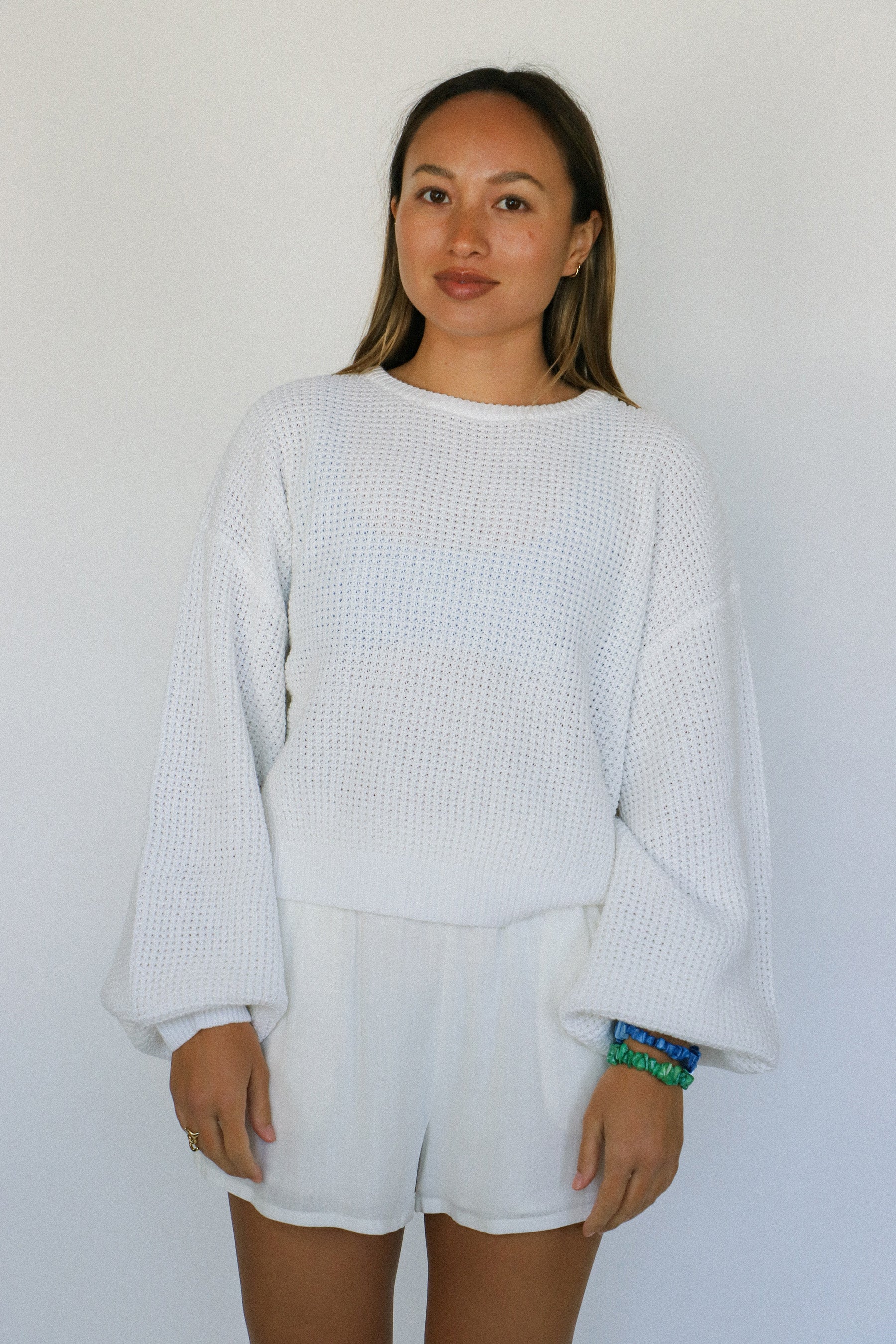 Soften into the Classic Knit Jumper in White, woven from a soft handed yarn blend to keep you cosy on the coolest of days.