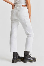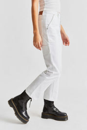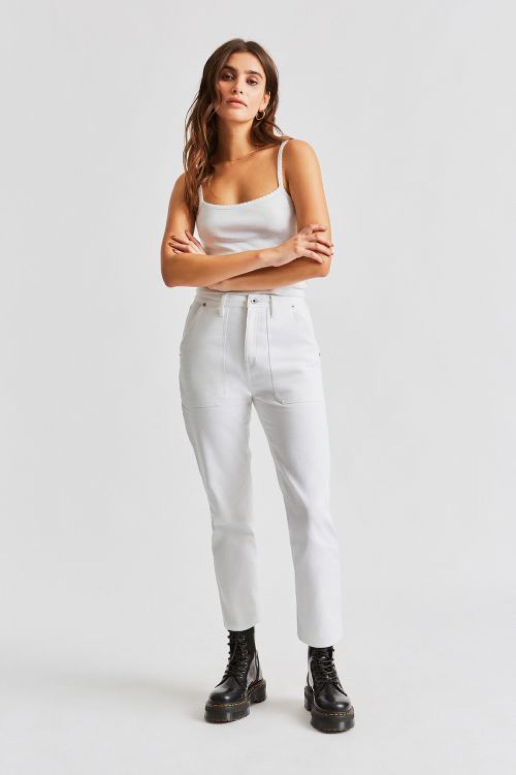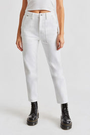 High waisted pant in a rigid cotton twill featuring utility pockets and a straight leg.