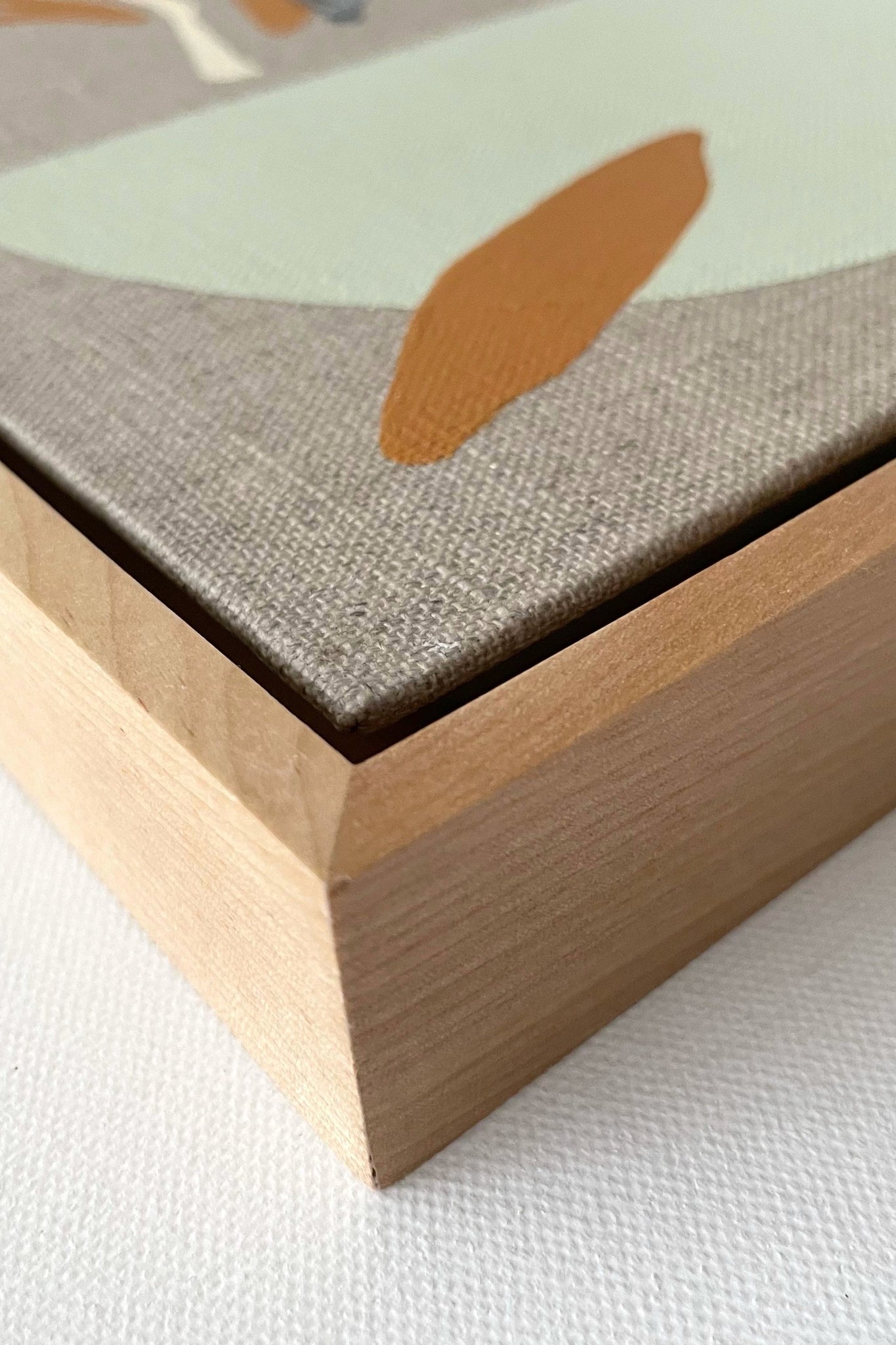 California artist Kara Firstenberger creates beautiful one of a kind mixed media paintings featuring abstract shapes and flora. Includes wood frame. Hand painted in Cardiff-by-the-Sea.